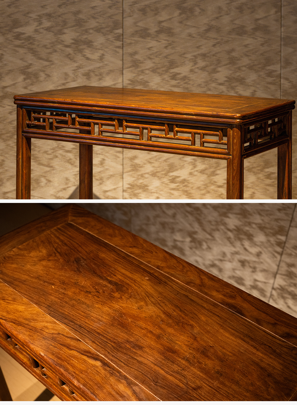 二十世纪 红木束腰马蹄腿拐子纹方桌