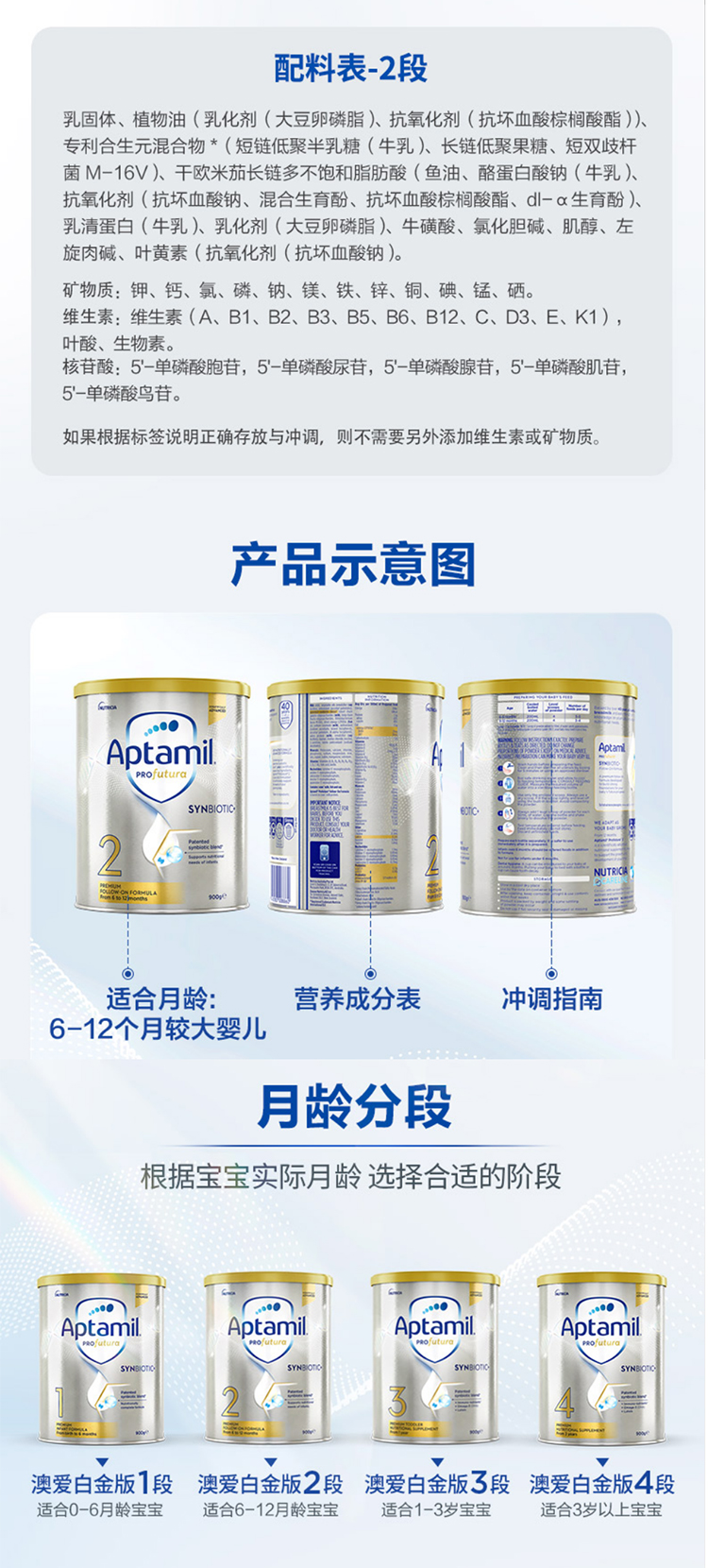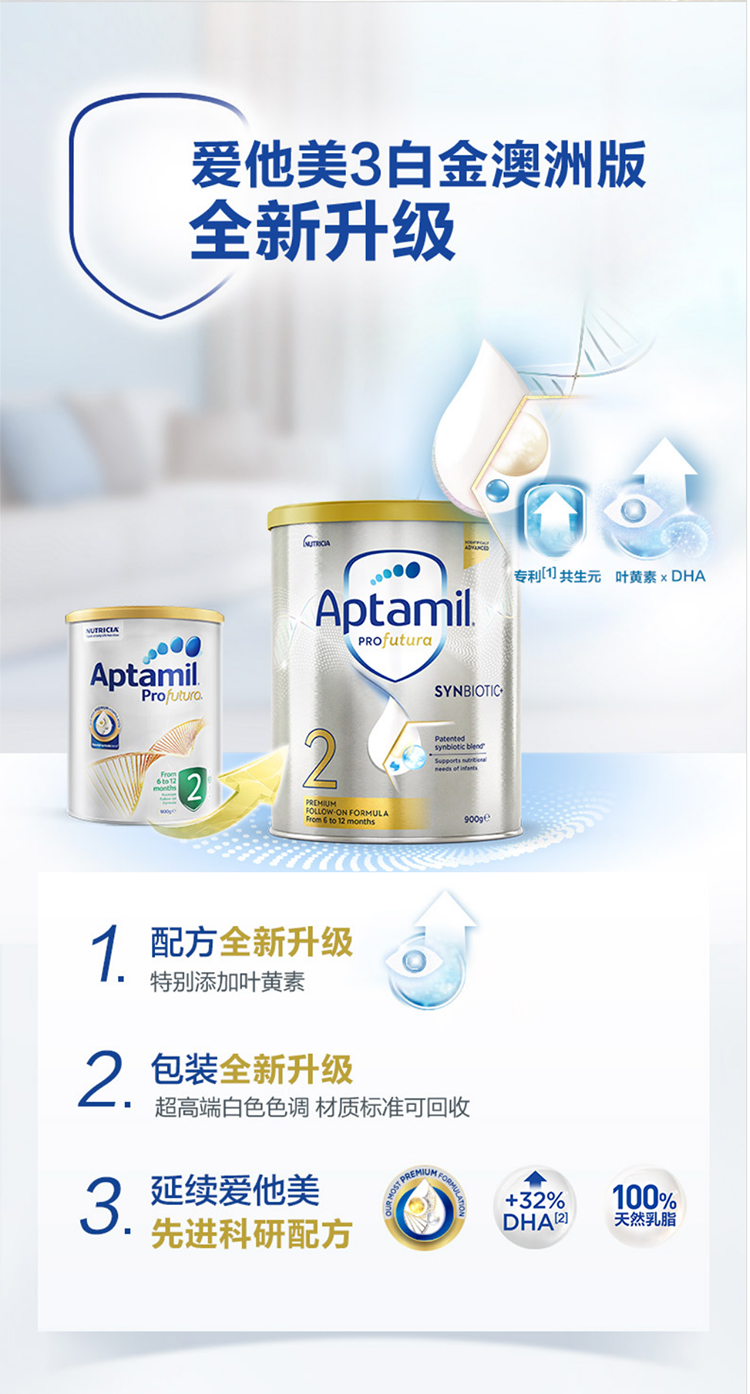 澳洲爱他美白金较大婴儿配方奶粉2段 900g