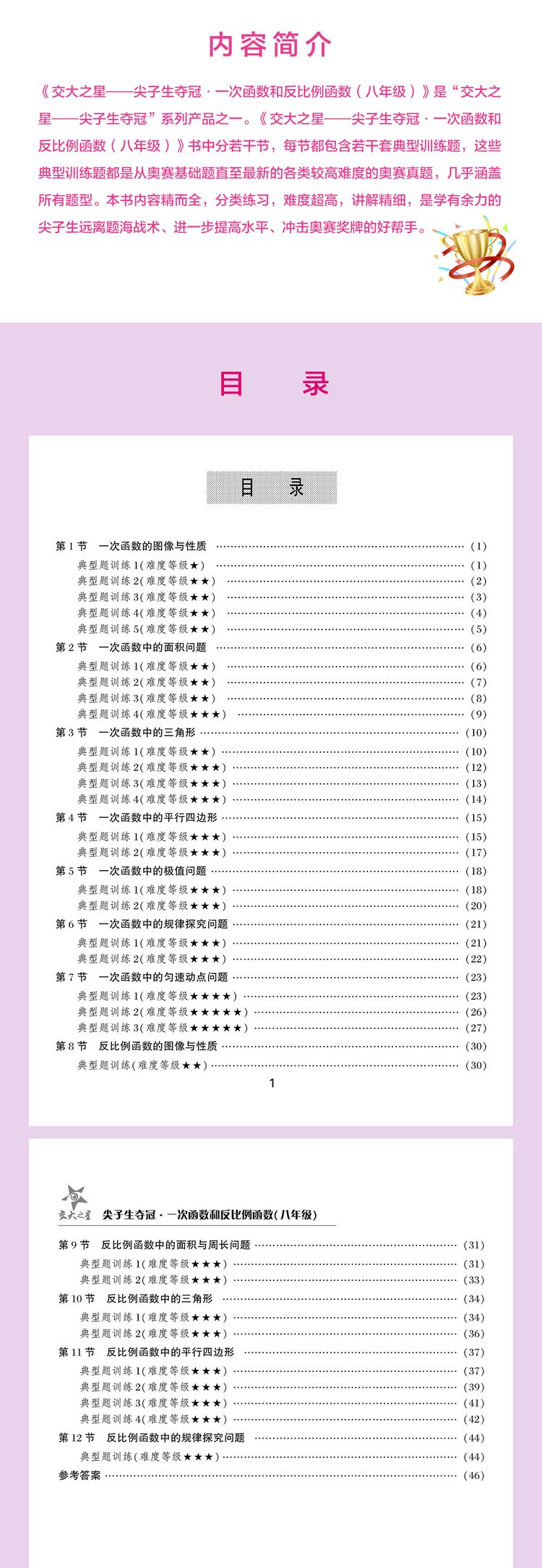 尖子生夺冠——一次函数和反比例函数(八年级)9787313216816 交大之星