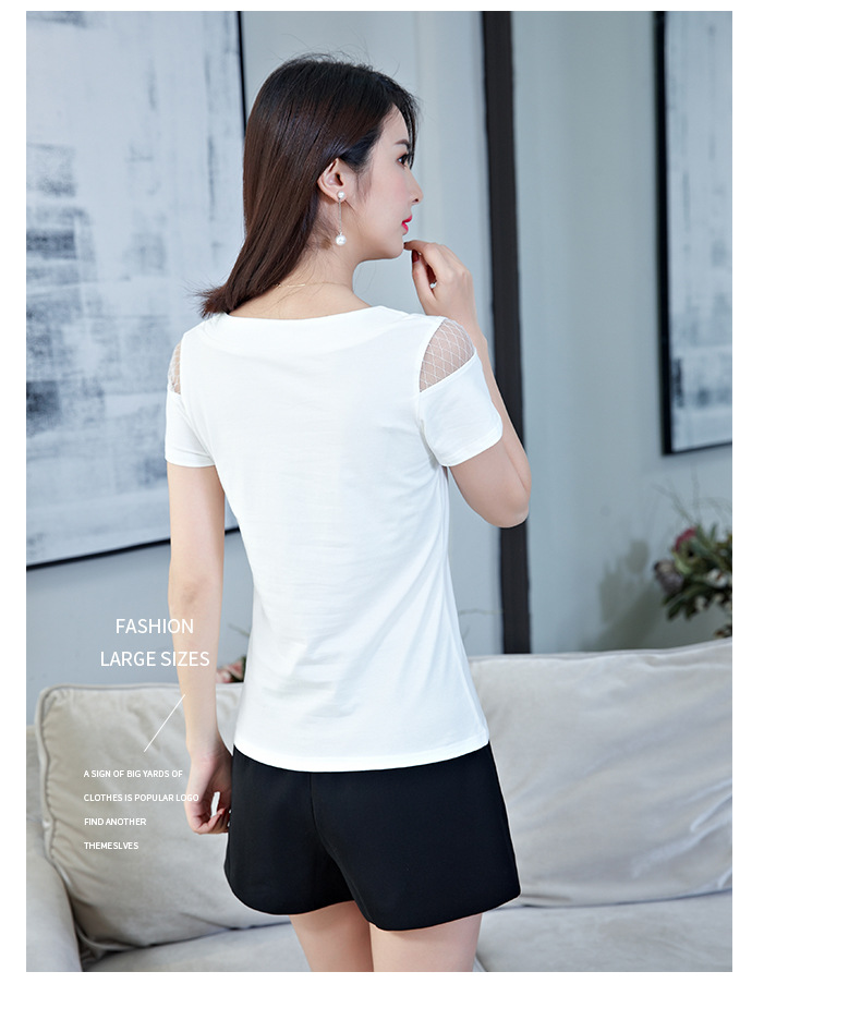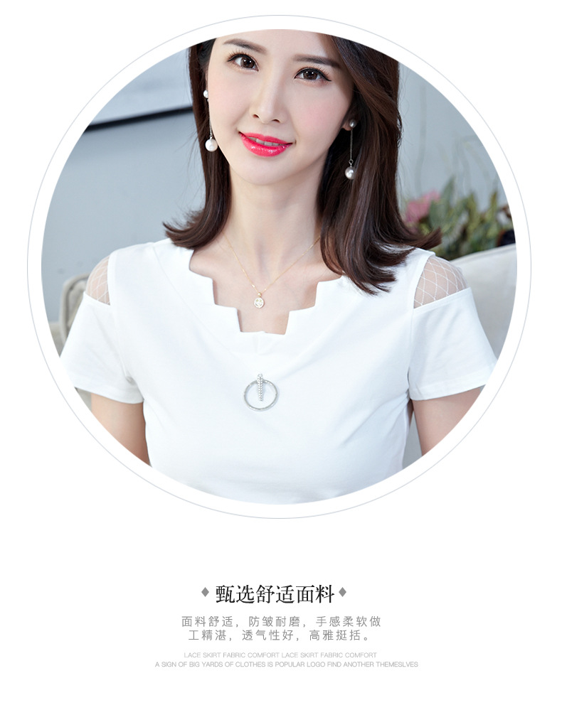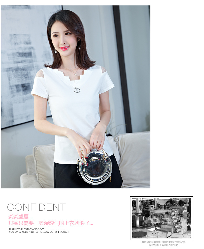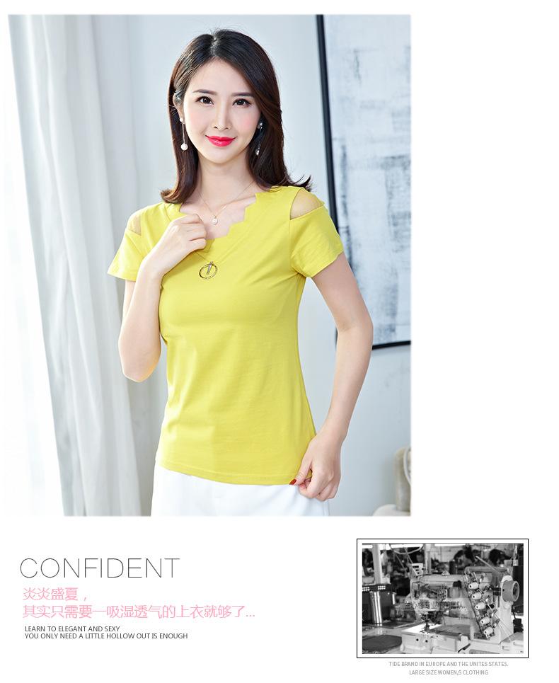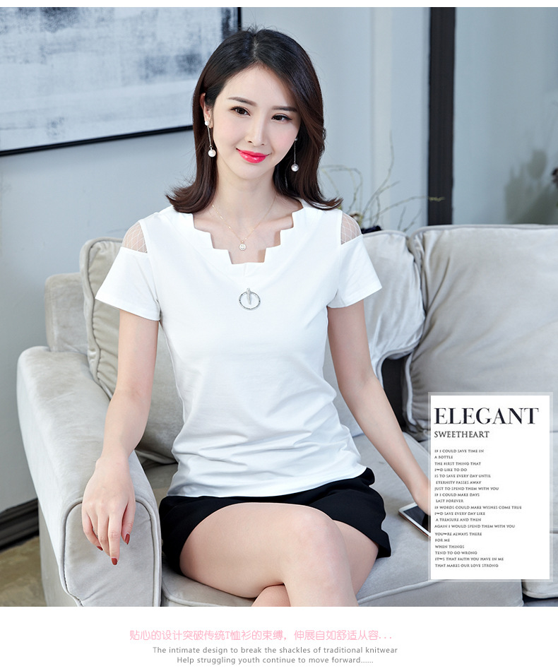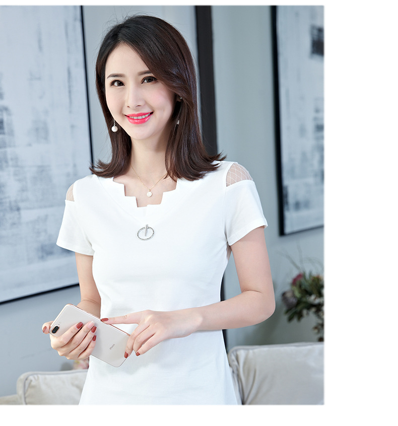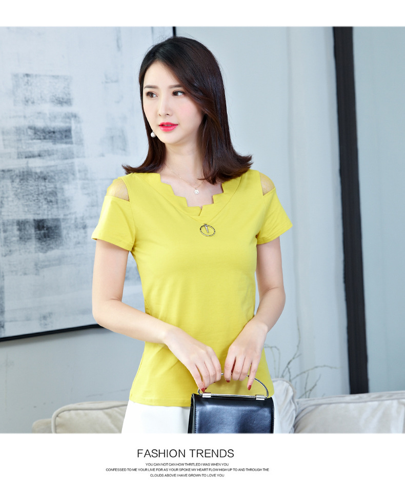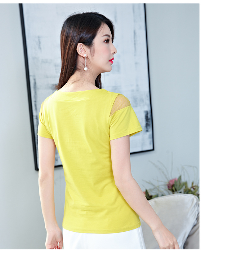 ZZ-DC6607新款条纹T恤纯棉V领网格拼接短袖上衣