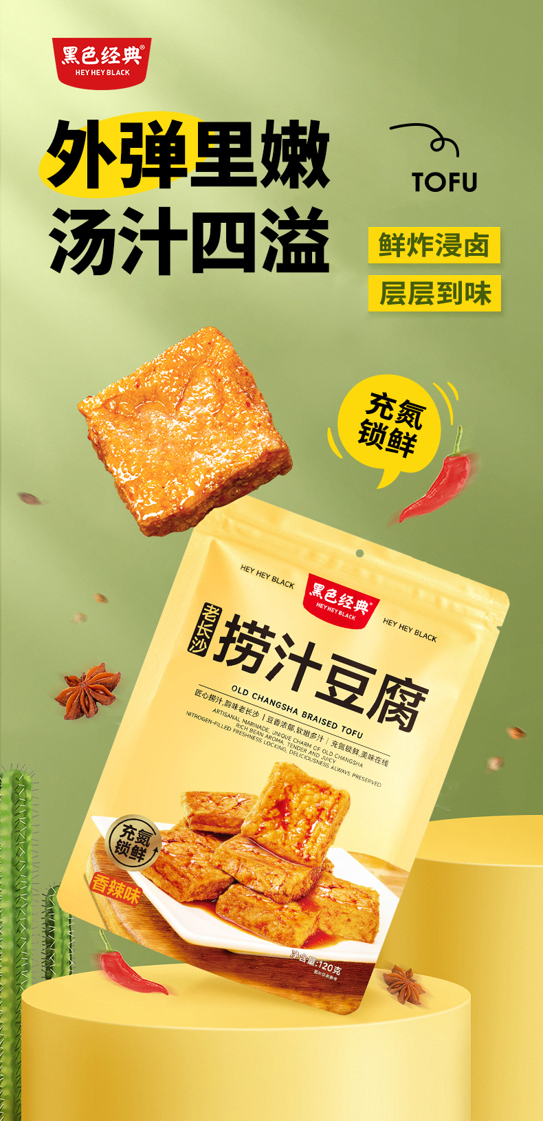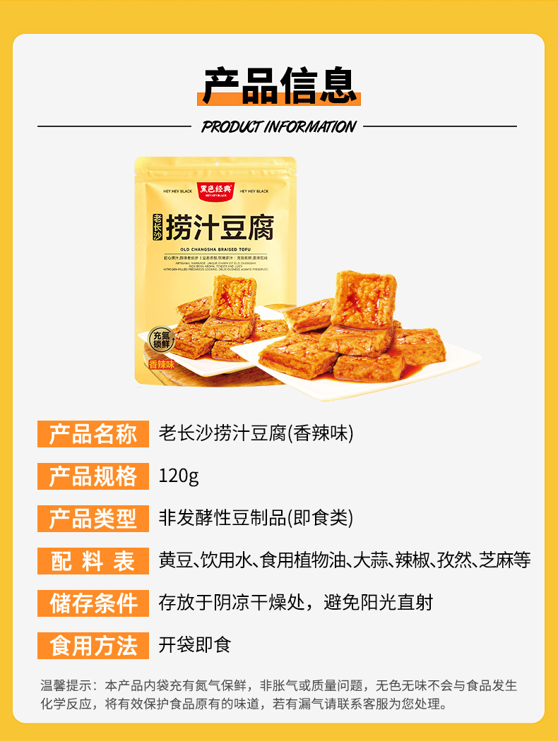 【湖南特产】黑色经典老长沙捞汁豆腐香辣味120g/袋 鲜炸浸卤 充氮锁鲜