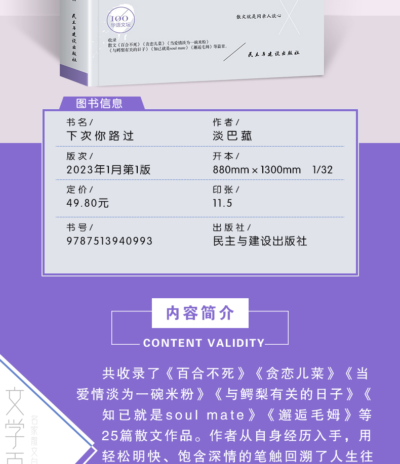 【签名本】《文学百年-下次你路过》淡巴菰 著