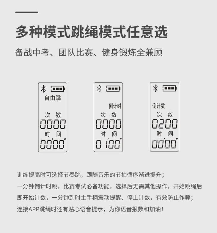 75派双轴承智能跳绳T20L 专有APP成人儿童健身燃脂蓝牙计数中考训练