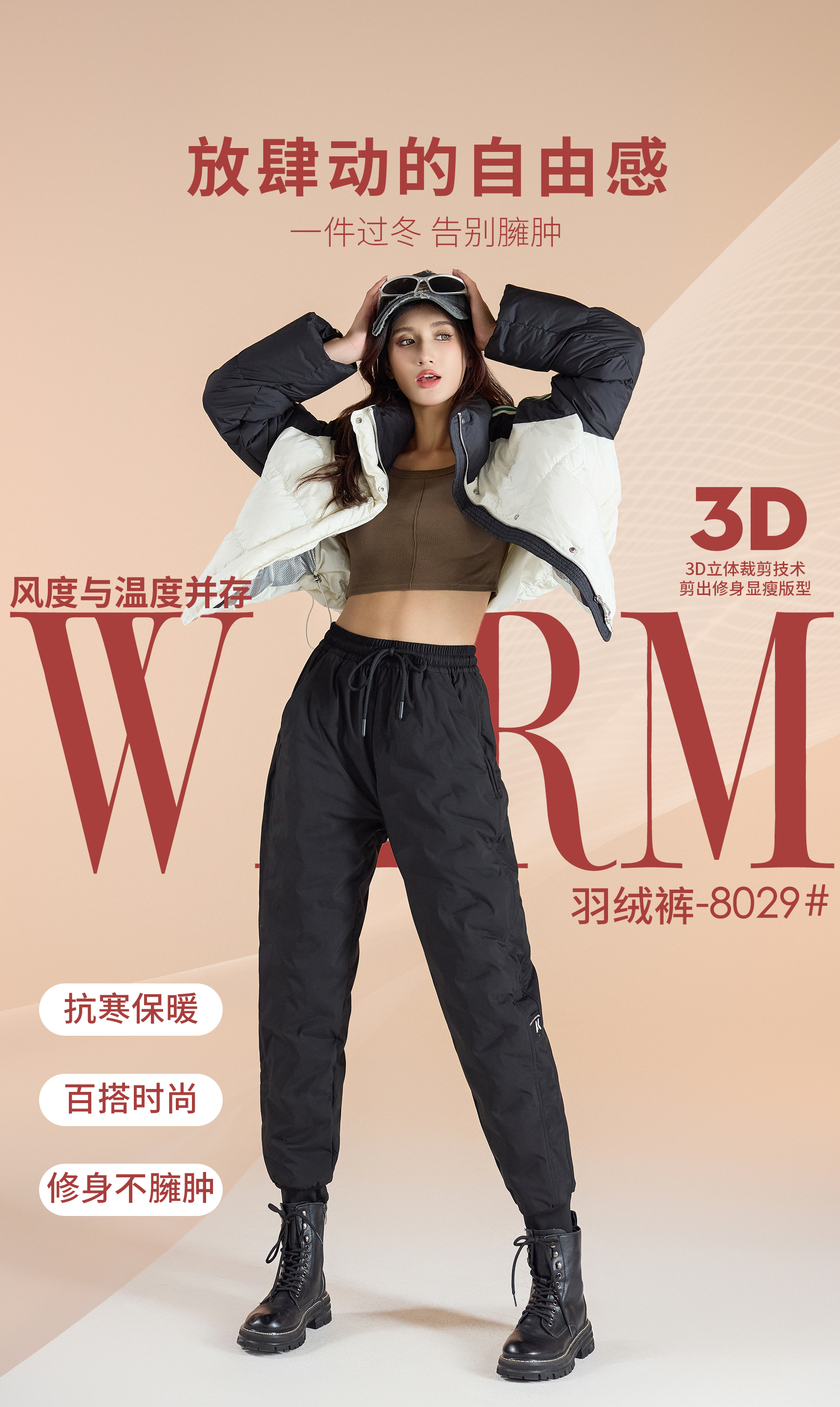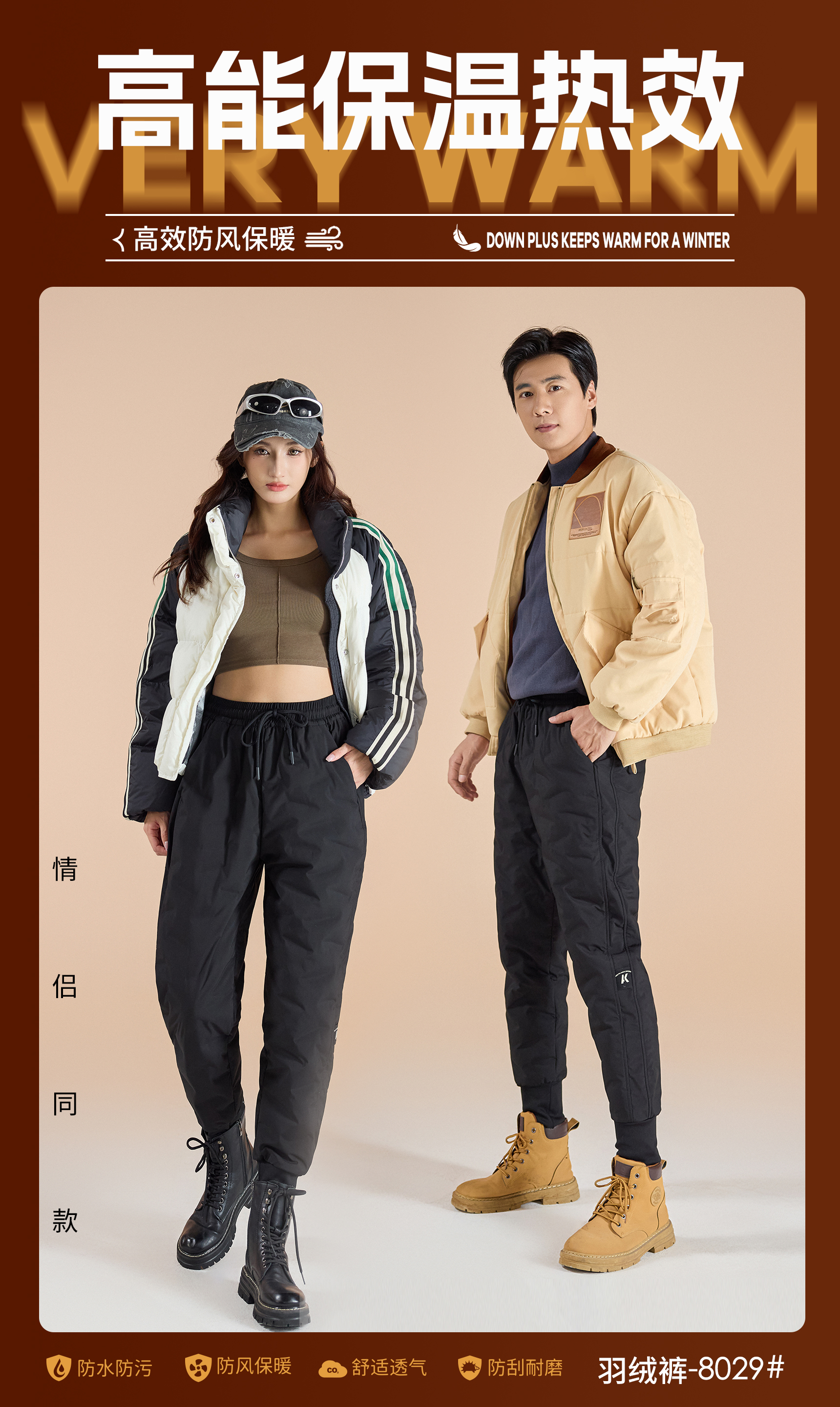 热卖中!!!雪中飞男女同款90白鸭绒三防秋冬防风保暖时尚显瘦百搭外穿工装羽绒裤