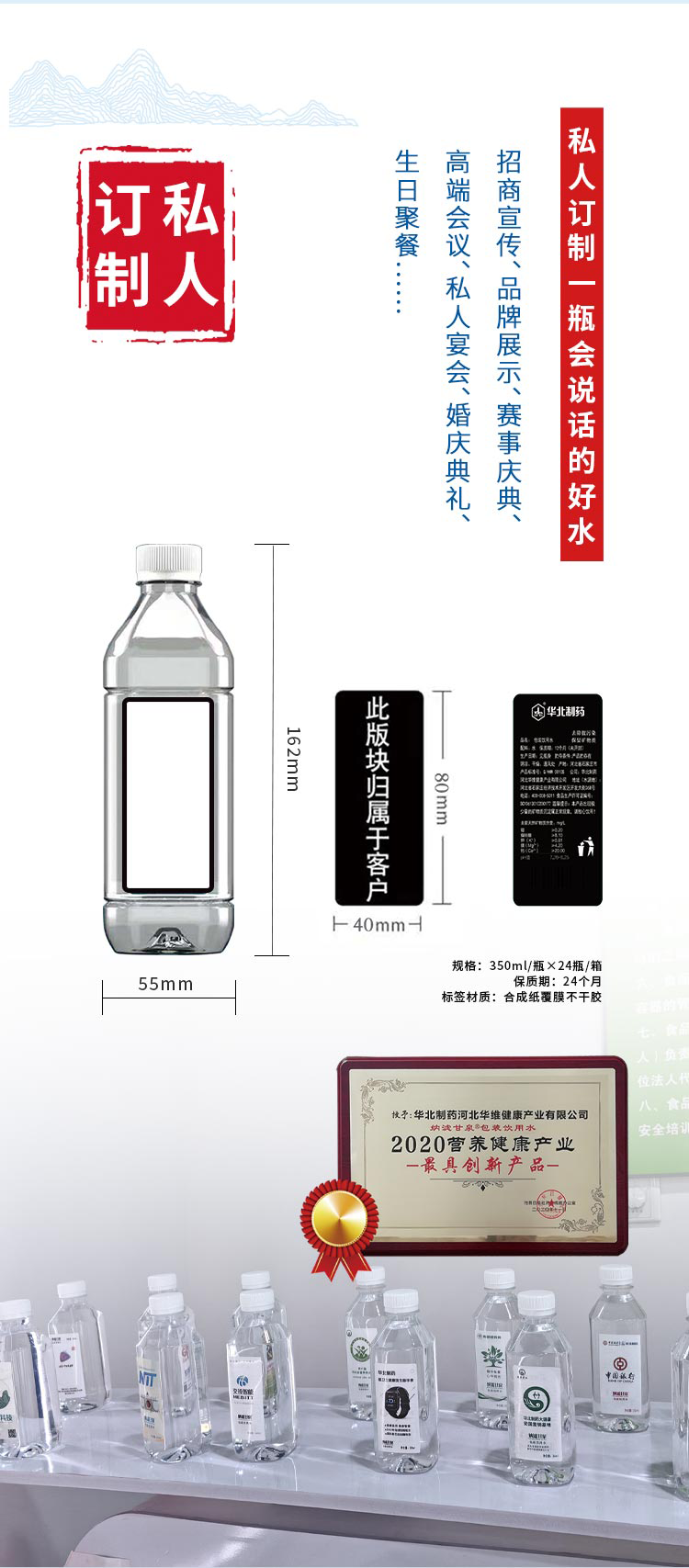 私人订制水 10箱起订 350mlx24瓶/箱 华北制药纳滤甘泉 科技改善水质 私人专属定制 一对一设计