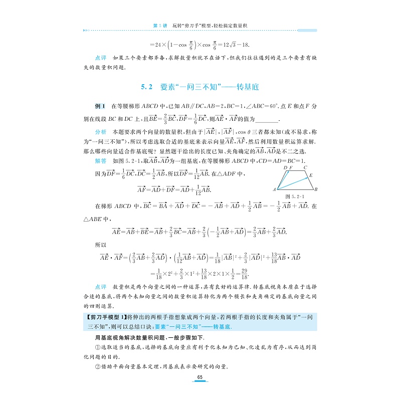 本书编写时结合新课程、新教材的理念,始终坚持从知识学情和学生学情两方面出发,通过挖掘学生学习向量内容的困惑点,直击向量学习的难点和痛点。从解题人与命题人的不同角度来梳理向量考查的热点,归纳解决向量问题的一般思路和方法。本书还创设了如“基”情四射、以大换小、“剪刀”模型、“圆”来如此等口诀和模型,帮助读者更好地掌握解题技巧。