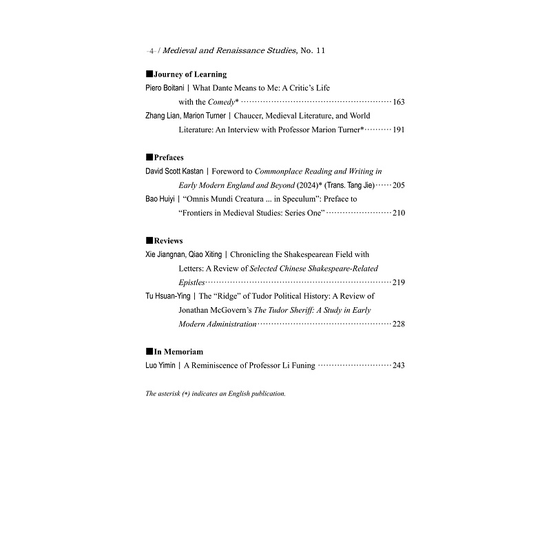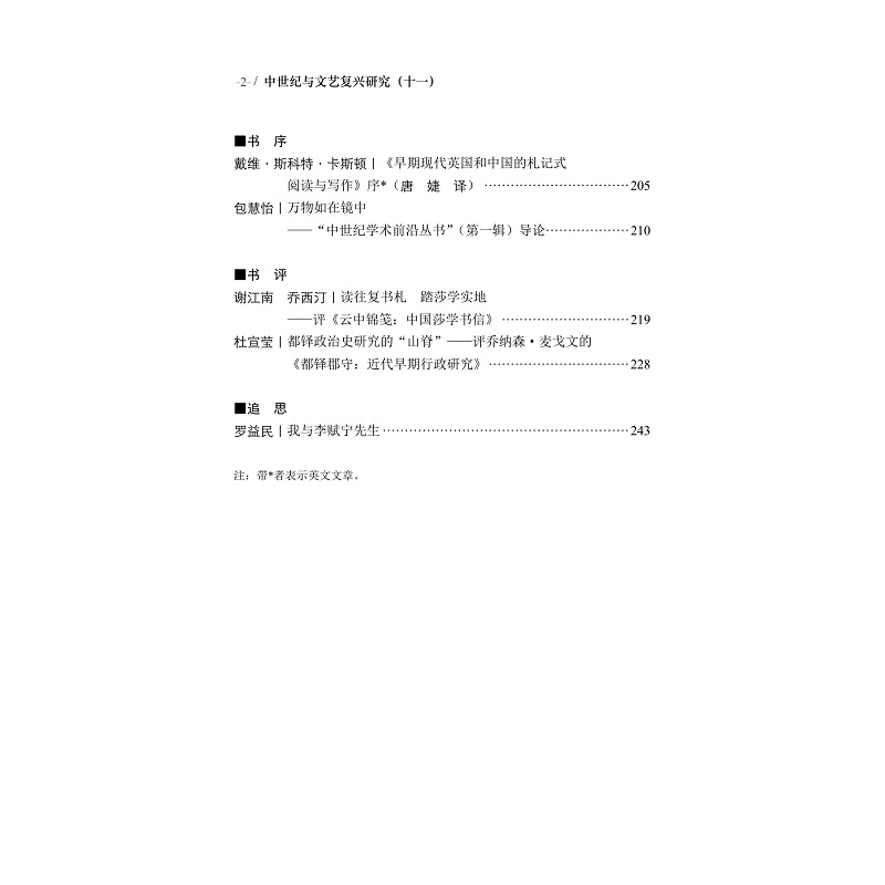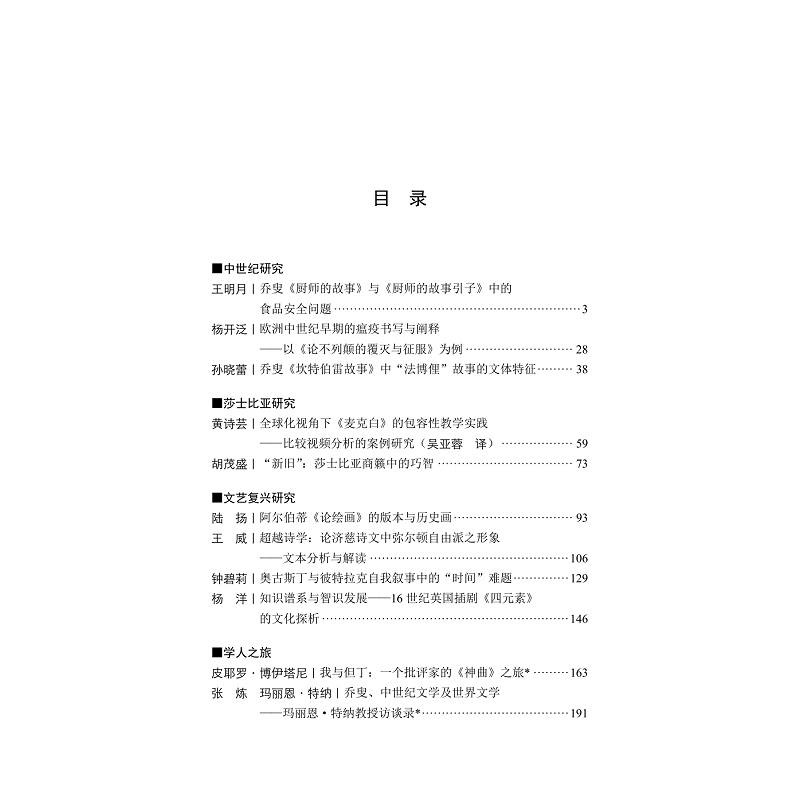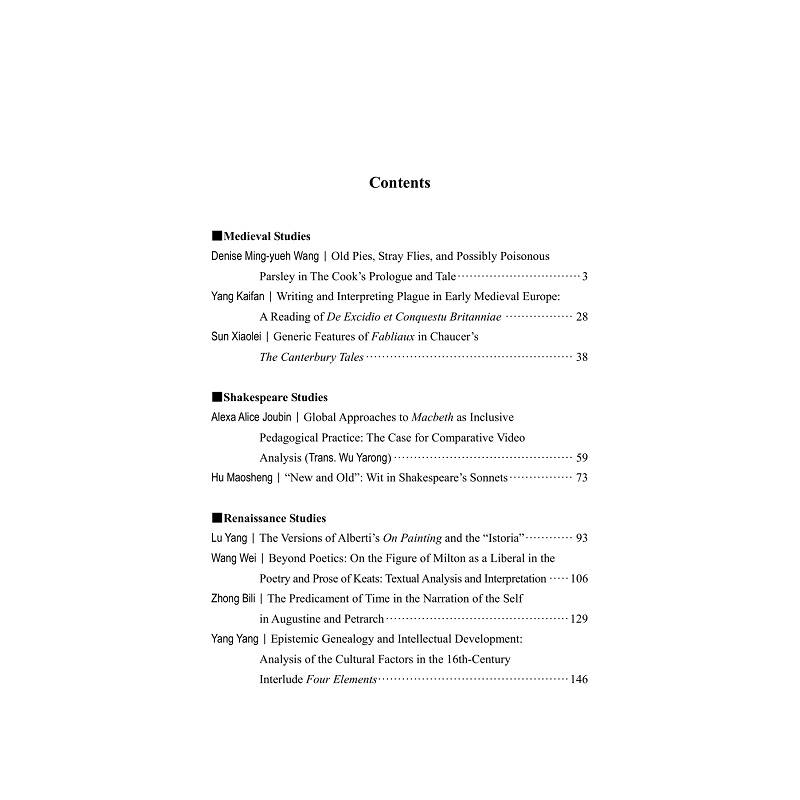 本书是浙江大学中世纪与文艺复兴研究中心主持的关于“中世纪与文艺复兴研究”的专业论丛,以早期英国文学研究为主,兼顾欧洲其他国家、其他语种和语言学、历史学等其他学科,具有专业性、综合性、跨学科、跨语种的特点。论丛将学术性置于首位,并重视学术研究中“人”的因素;以中文论文为主,也有少量英文论文发表;既有资深学者的论文,也有年轻新锐的论文。设有“中世纪研究”“莎士比亚研究”“文艺复兴研究”“学人之旅”“著译者言”“书评”“追思”等栏目,保证学术质量。计划每年出版两辑。