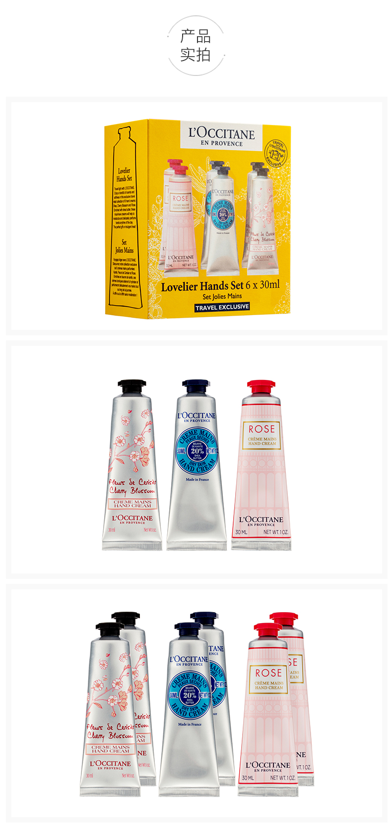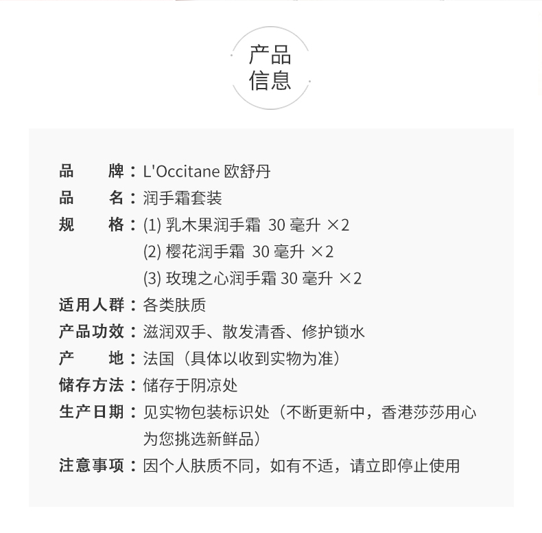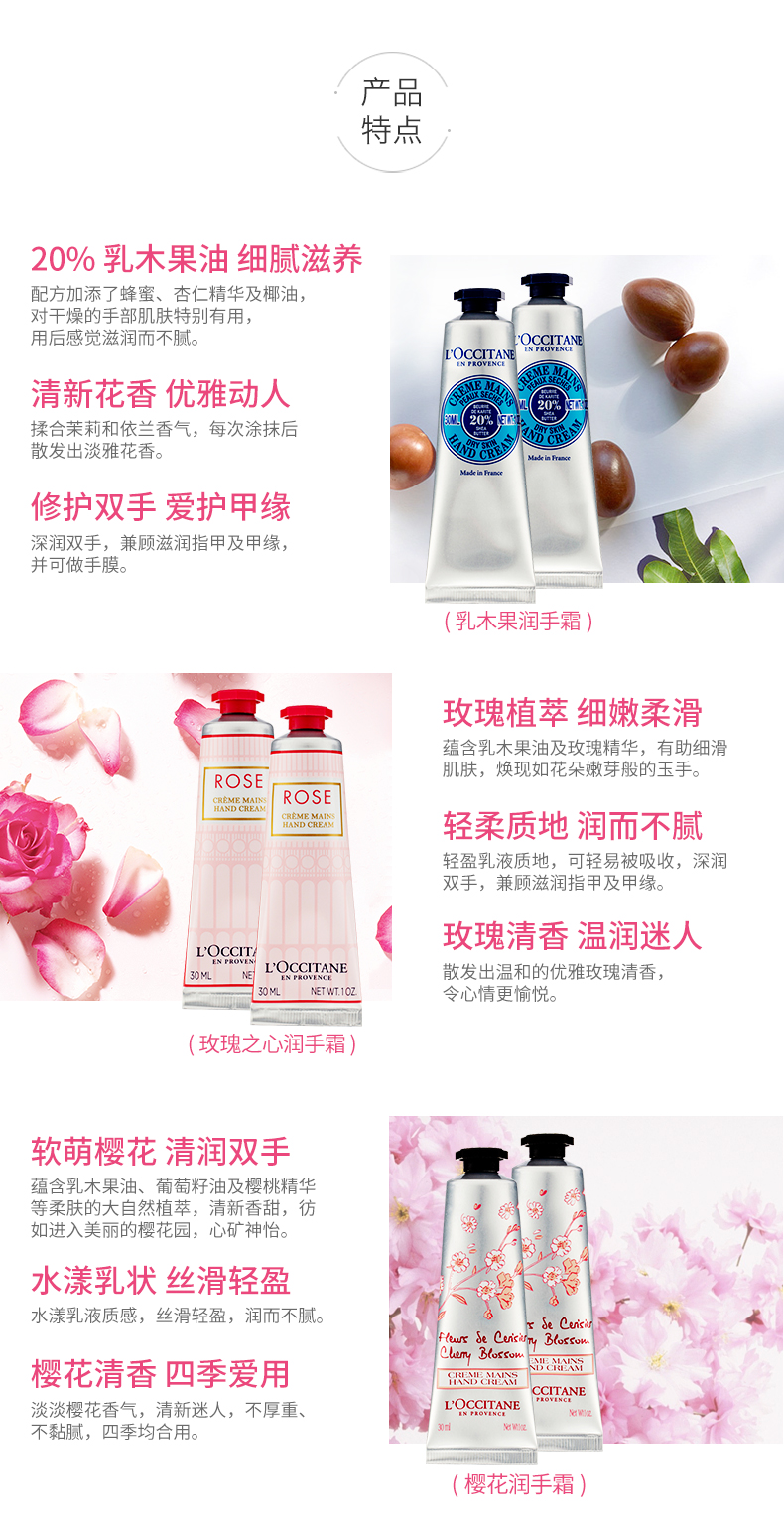 欧舒丹玫瑰芍药乳木果护手霜套装30ml*6