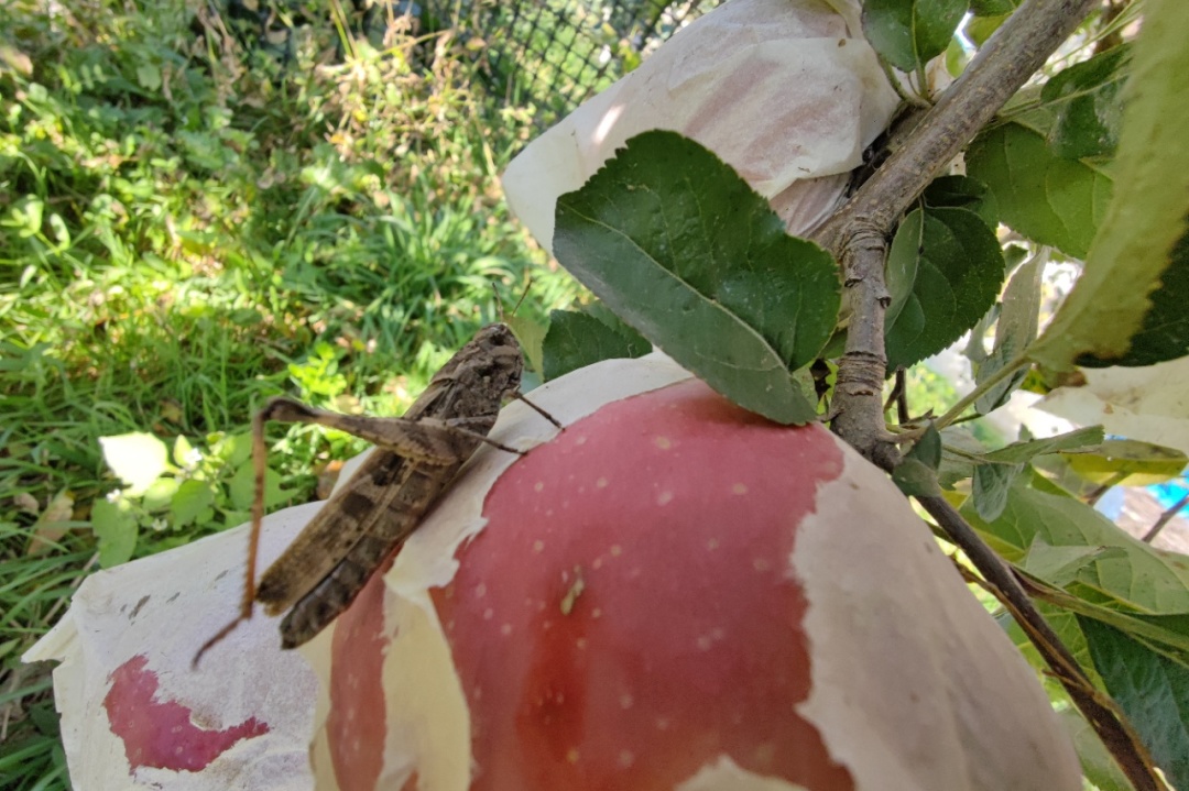 果园里种植和野生的花草长一起,乱中有序,为生物多样性打下基础。在果园丰富的物种里,草蛉控住了绵蚜、螳螂抓住了凤蝶、有益菌抑制了病害……