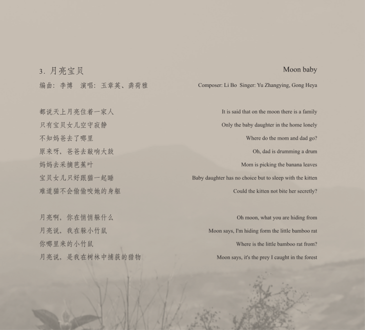 《千年布朗》专辑还加入布朗族国家级非物质文化遗产传承人,参与唱片的演唱录制。