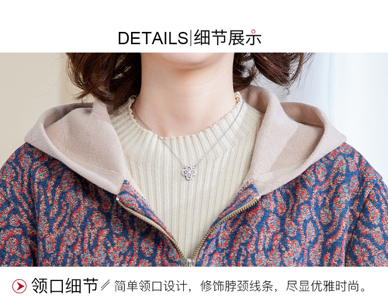 FD-2317中年妈妈外套洋气连帽春秋短款休闲上衣新款中老年女装减龄夹克衫 商品图4