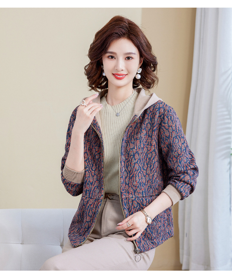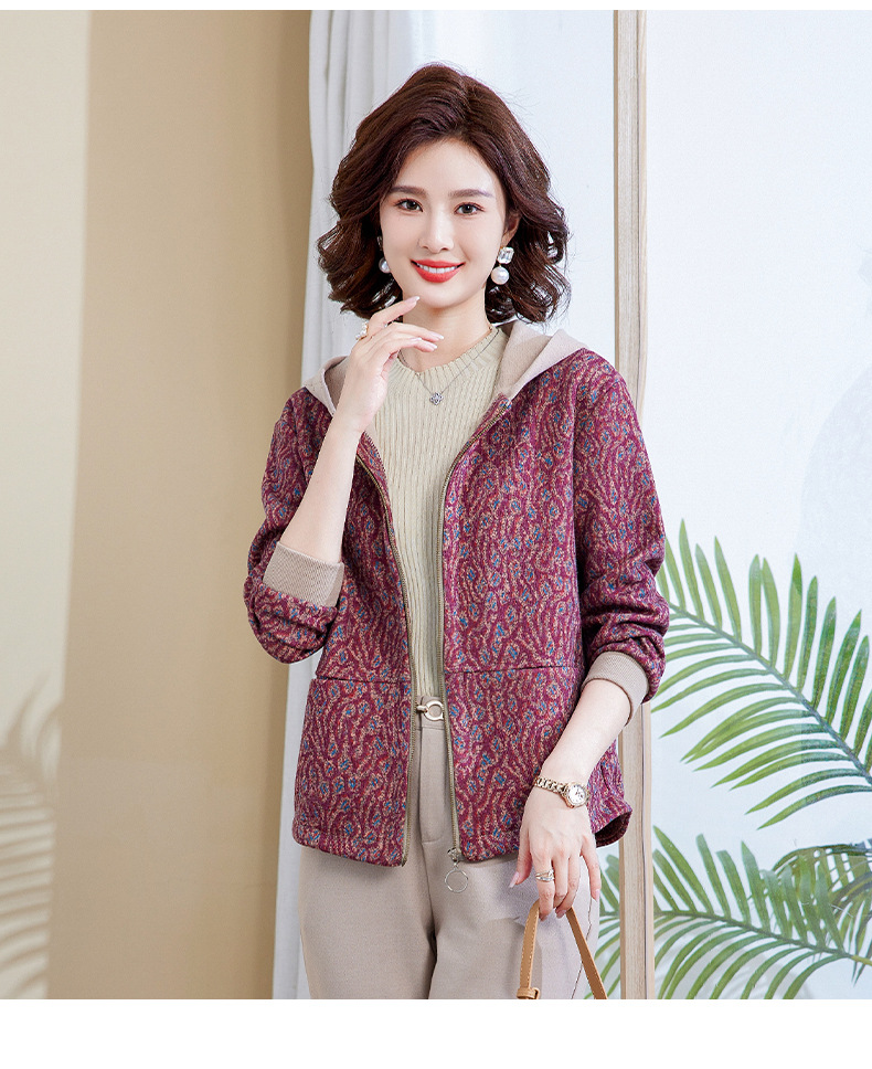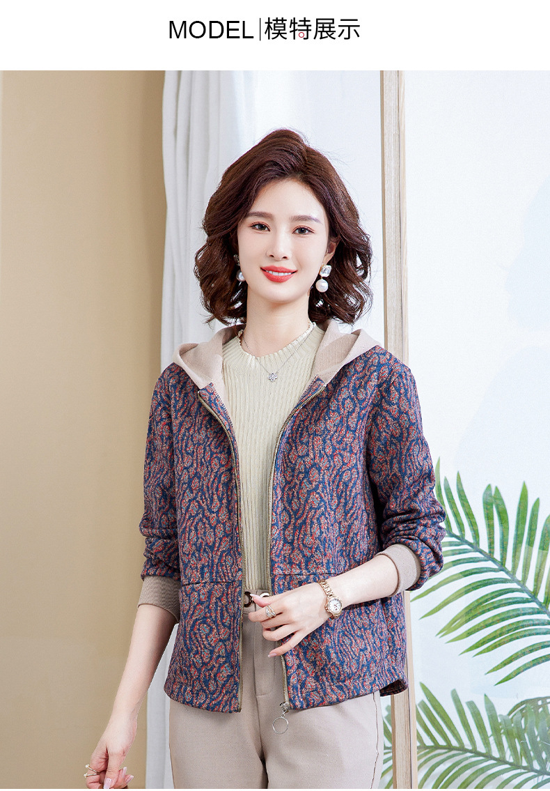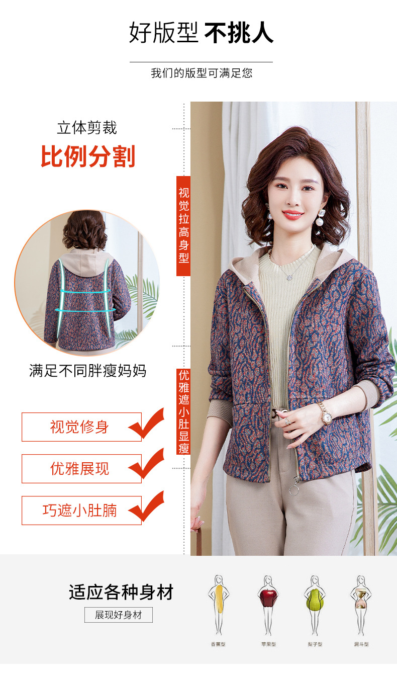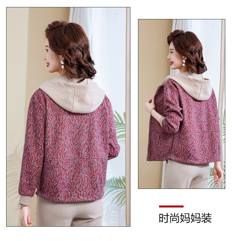 FD-2317中年妈妈外套洋气连帽春秋短款休闲上衣新款中老年女装减龄夹克衫 商品图1