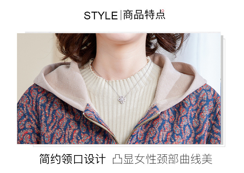 FD-2317中年妈妈外套洋气连帽春秋短款休闲上衣新款中老年女装减龄夹克衫 商品图3