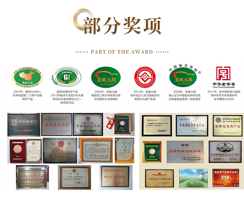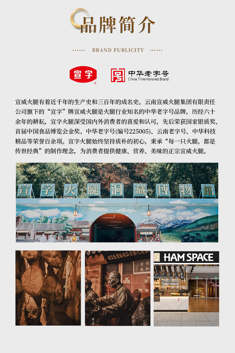 300年制腿工艺,制腿师傅沿用传统方法,保证腌制出来的火腿颜色醇正,肉质清香味美,充满浓浓的宣威特色火腿香!宣威火腿甄选乌金猪2条后腿制作没有添加其他原料,仅仅只有食盐辅助采用洞藏发酵,降低盐分,保证原汁原味保持了肉的鲜嫩风味,肉香浓郁,营养更健康