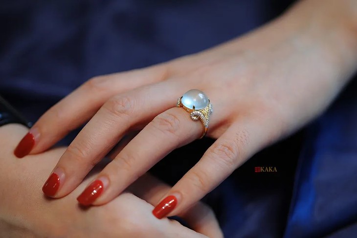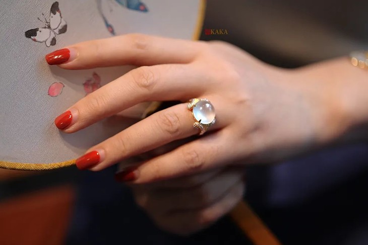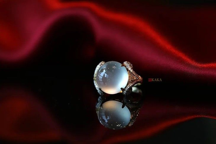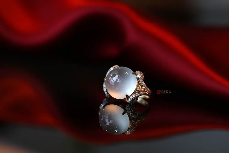 这枚蛋面是形极其正的正圆,饱满,端庄,像一枚鸽子蛋,起光。