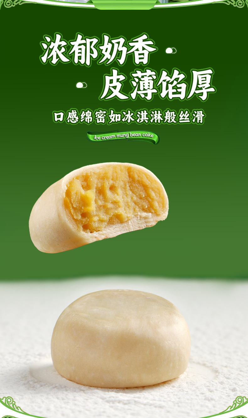 【浓郁奶香,皮薄馅厚】冰淇淋般绿豆饼 芋泥饼网红小吃 冰皮蛋糕营养早餐 下午茶休闲甜品零食-QQ
