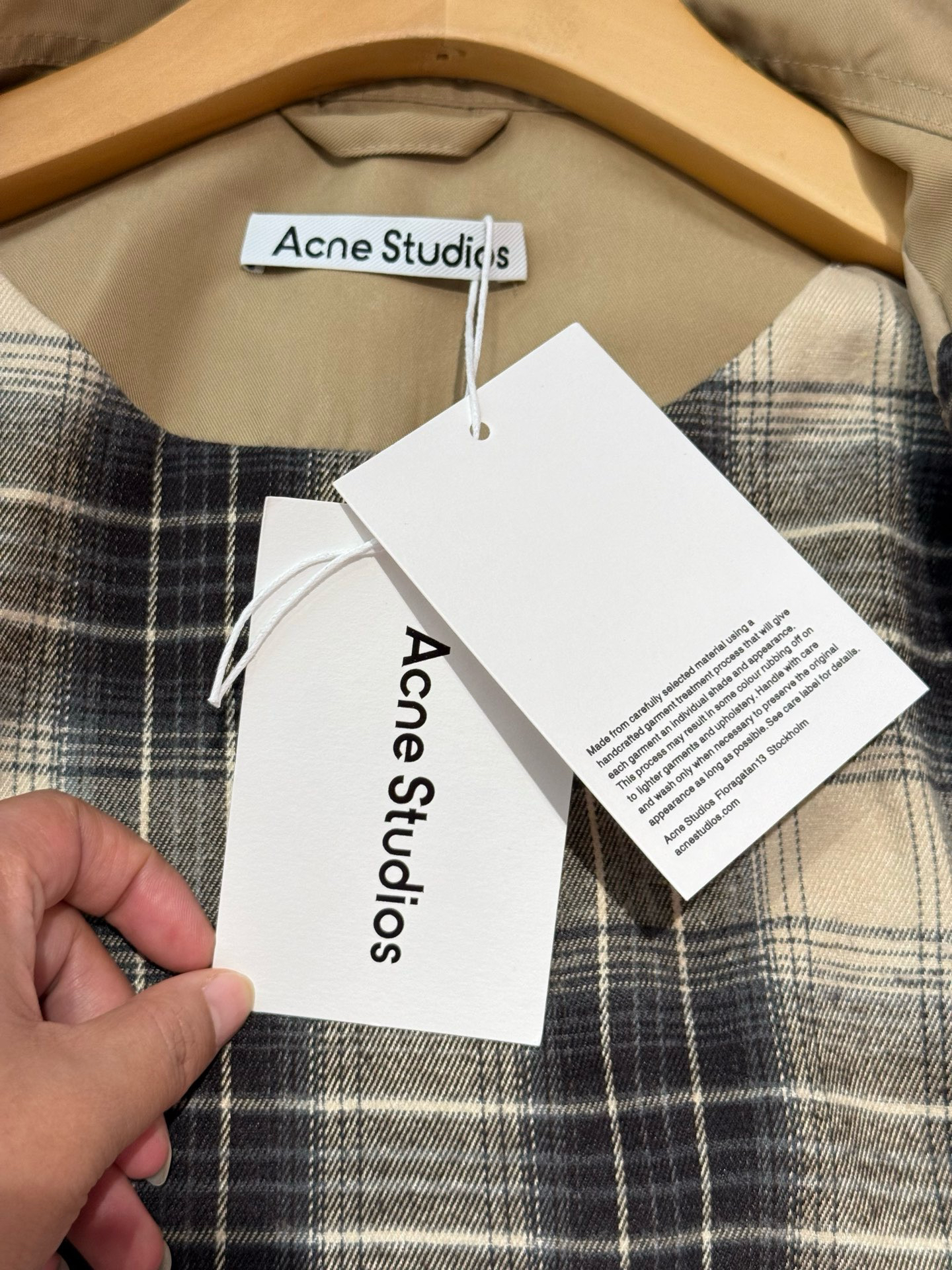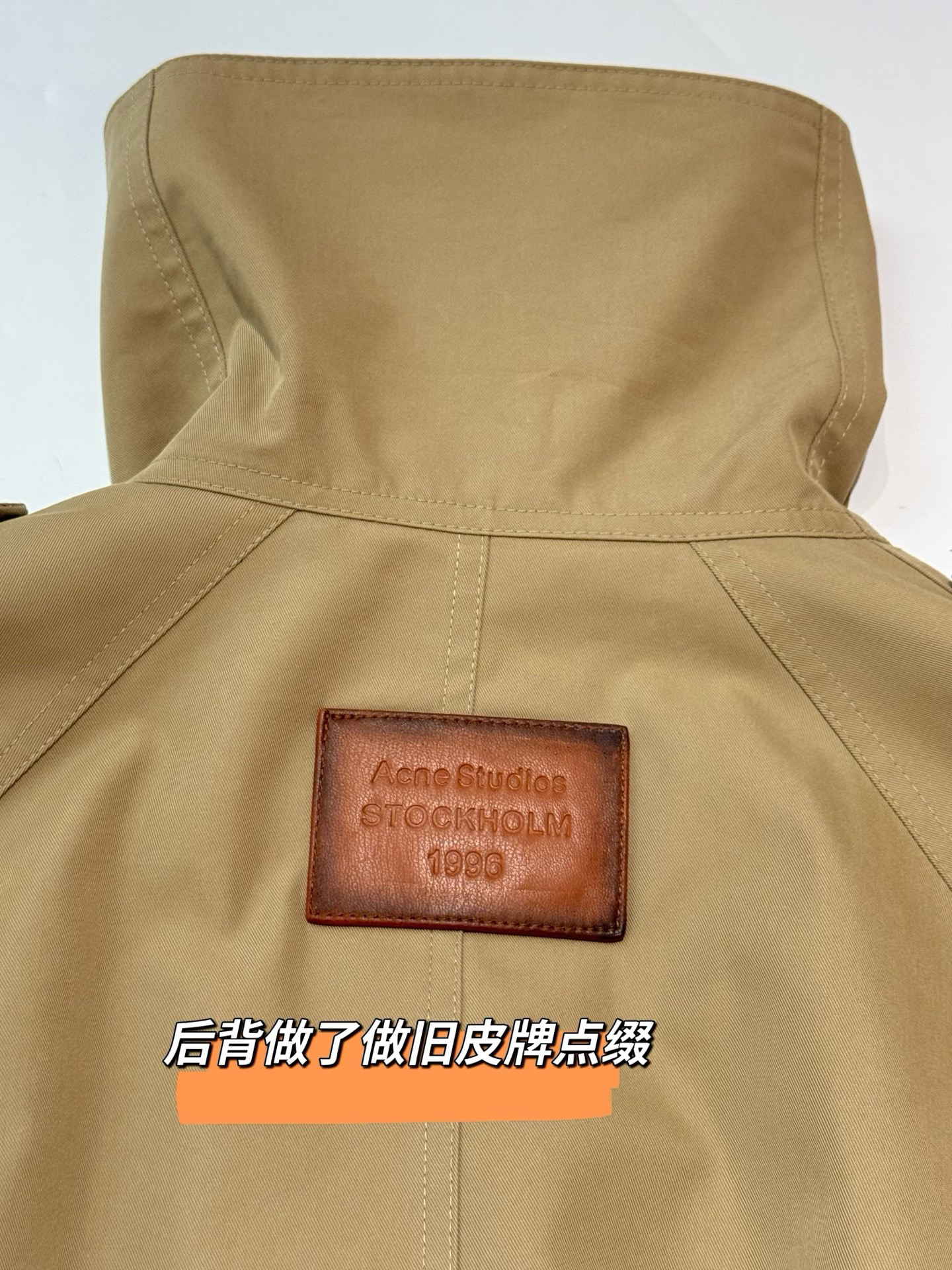 想入一件原版质感的来就对了哈!~最近爆火的“巴恩风”代表单品之一!属于越穿越爱的类型!Acne studi*s 25Fw早秋新款 老钱复古风短款夹克风衣外套丨⚠独家yb开发‼️最近爆火的“巴恩风”代表单品之一!原版定制定染工装面料!很有秋天氛围的复古卡其色,版型挺括赶紧利落!内里格纹羊毛里衬!后背做了做旧皮牌点缀,袖口还加了可调节的日字袖扣,我们不惜成本,只为做到完美还原。属于越穿越爱的类型!