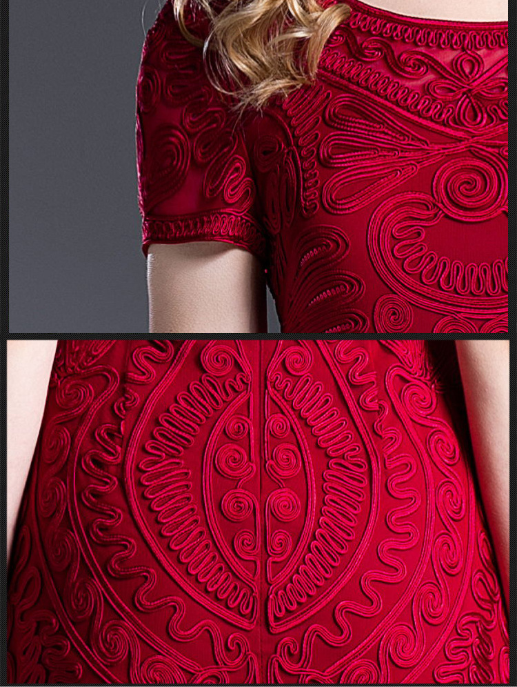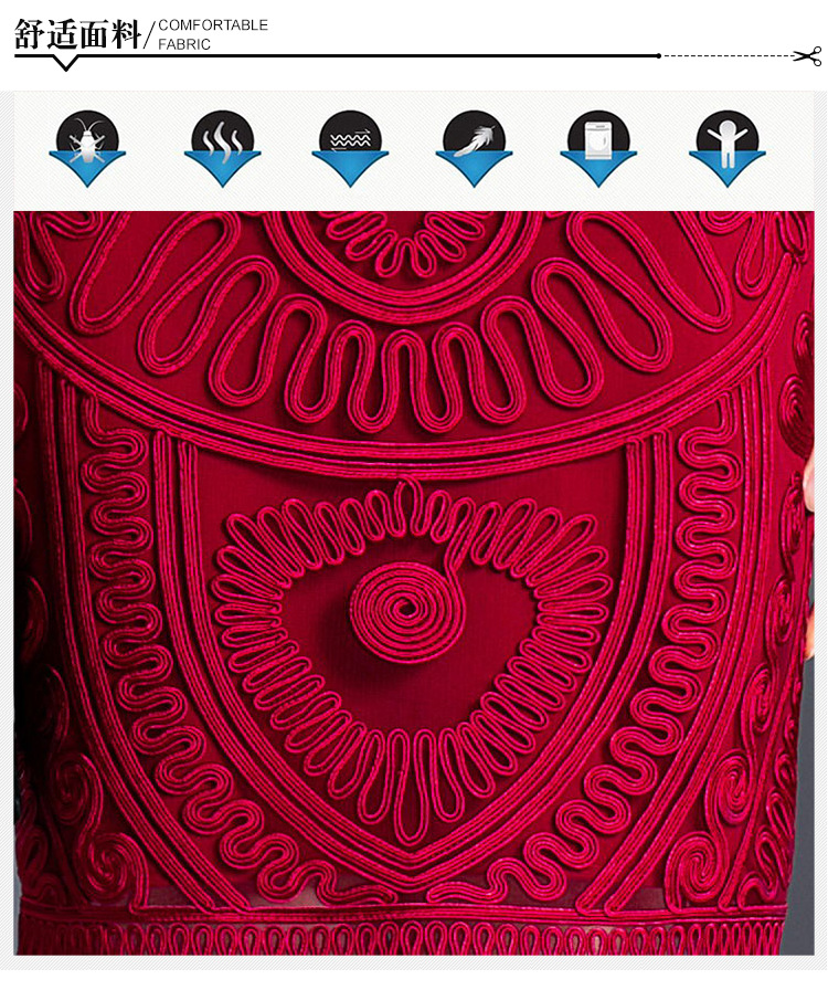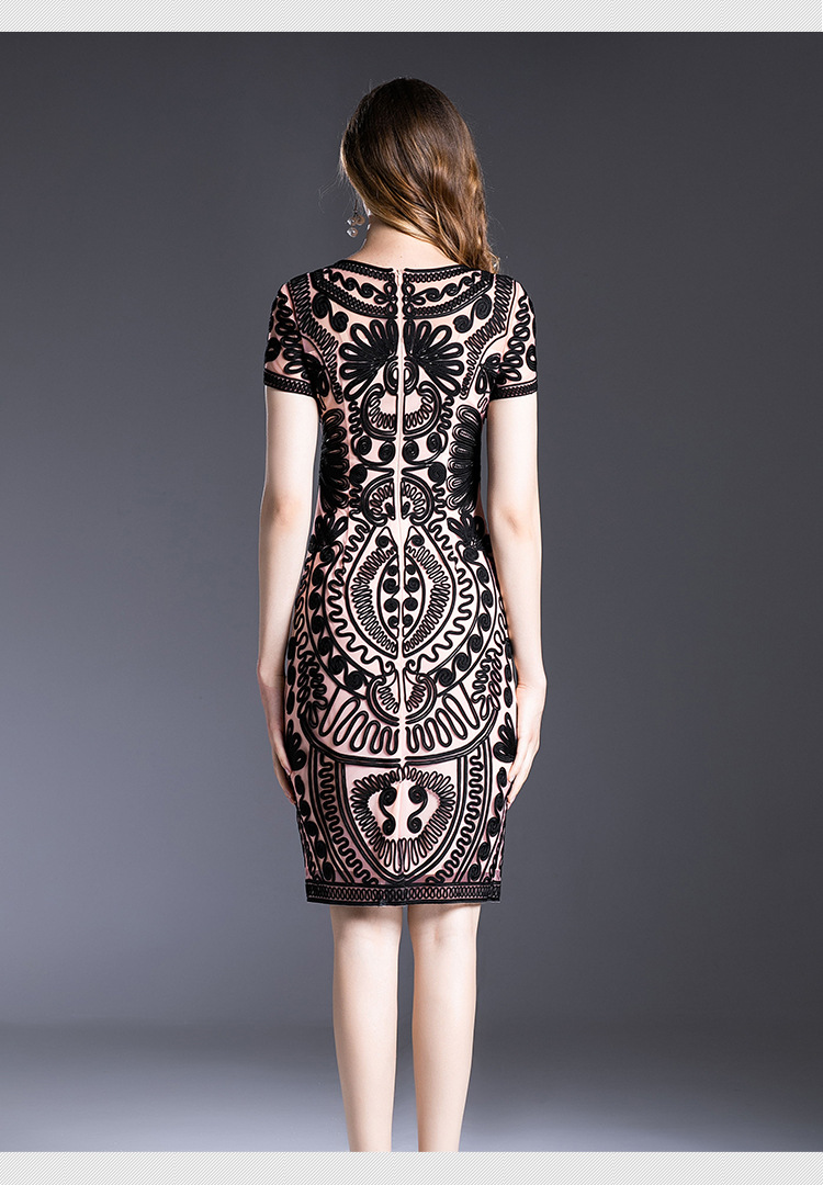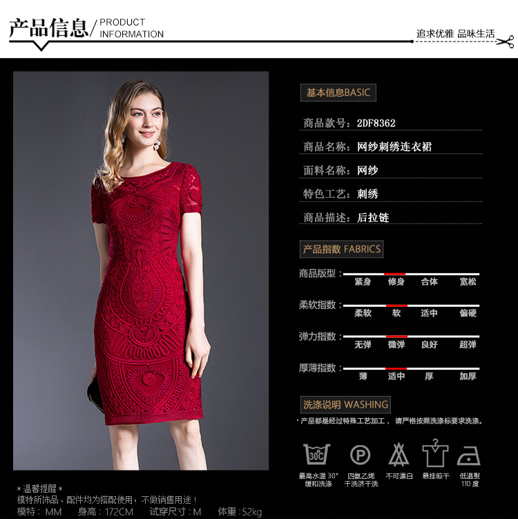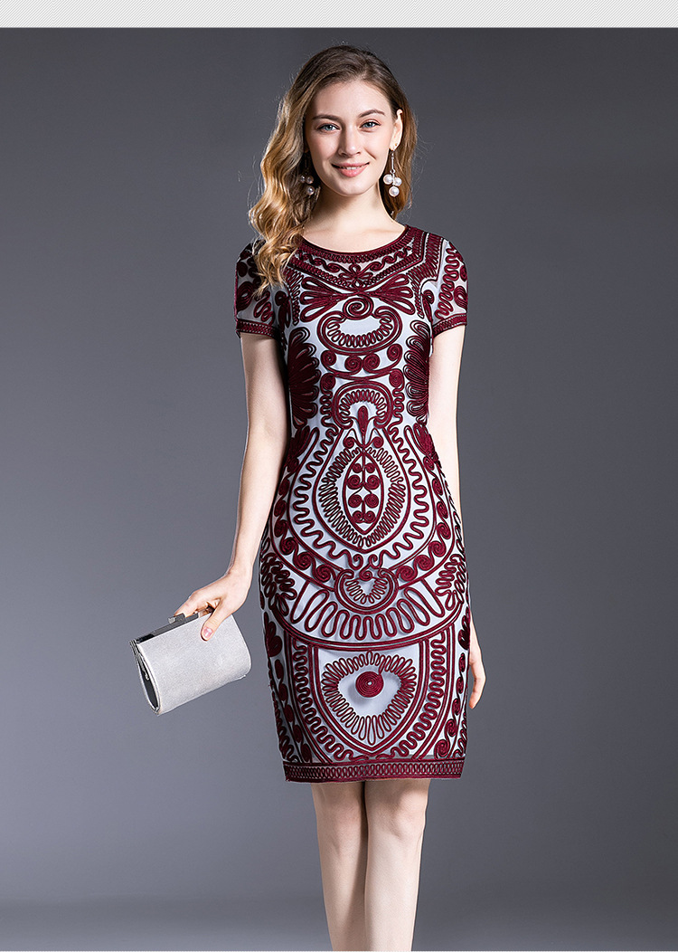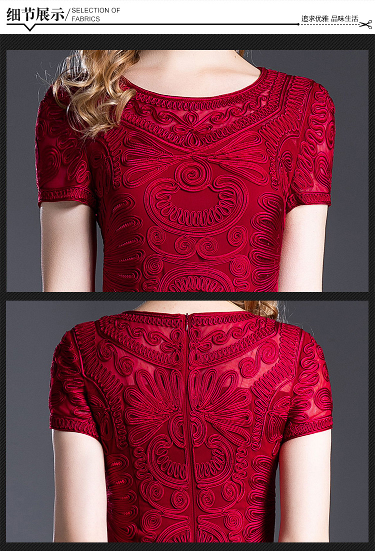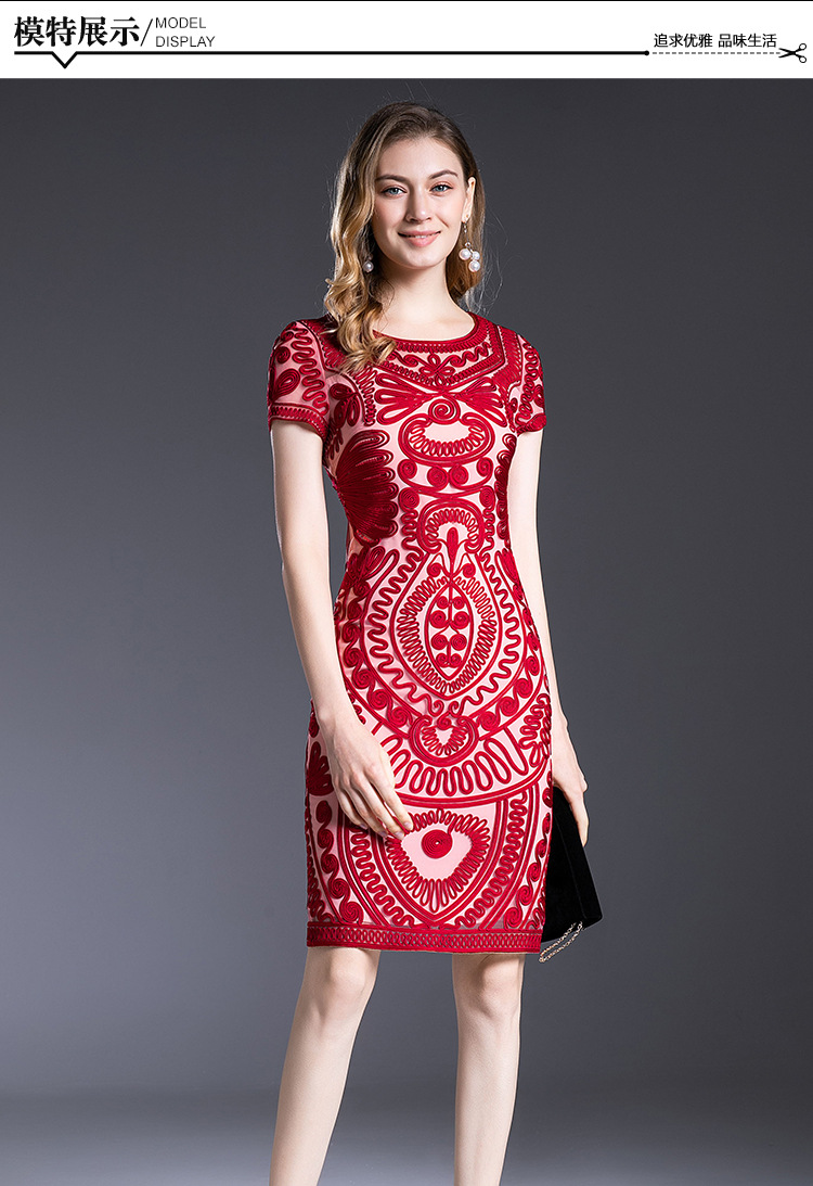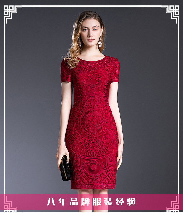 MWYG-2DF8362新款中年妈妈装刺绣修身女装大码欧美短袖连衣裙