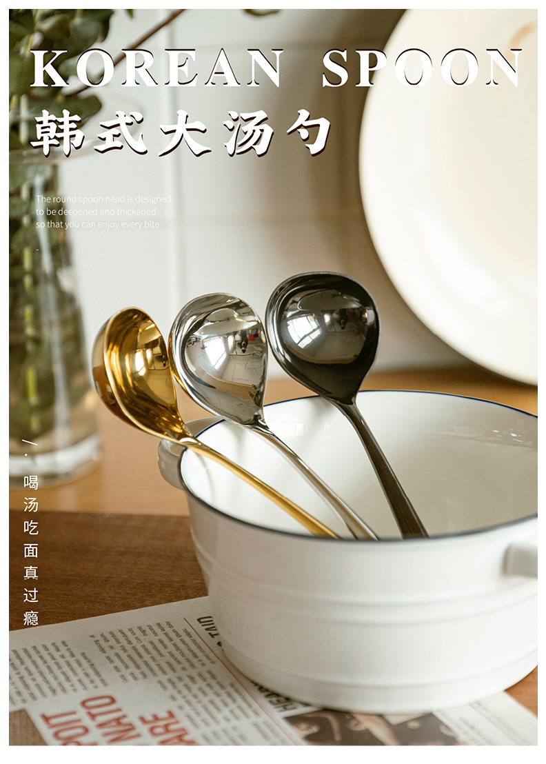 摩登主妇汤勺家用大号盛汤调羹不锈钢汤匙食品级长柄韩式干饭勺子