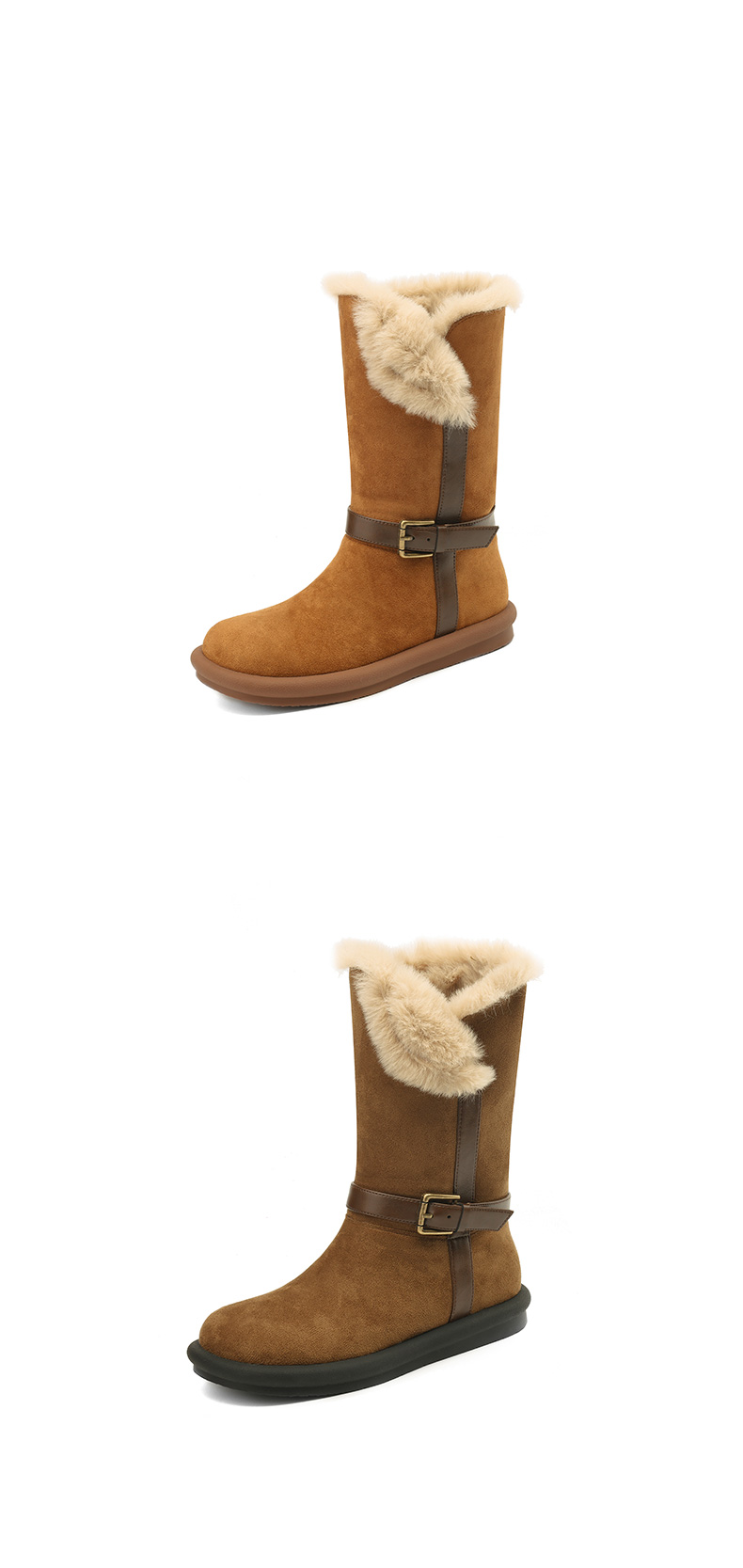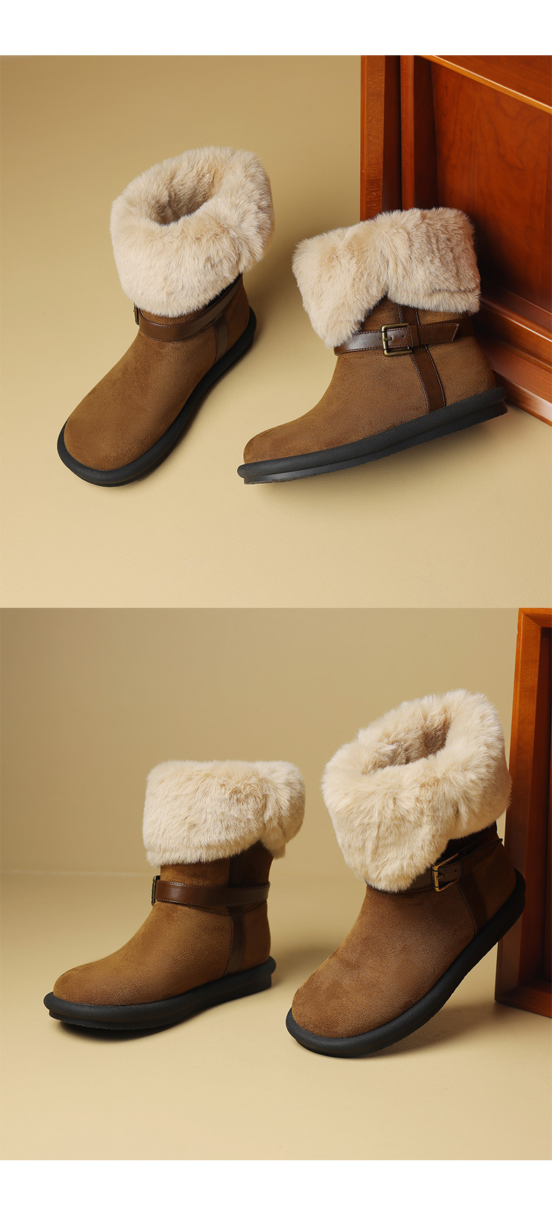 两穿可翻折雪地靴,加绒棉鞋毛毛中筒靴DYJ-CM6845