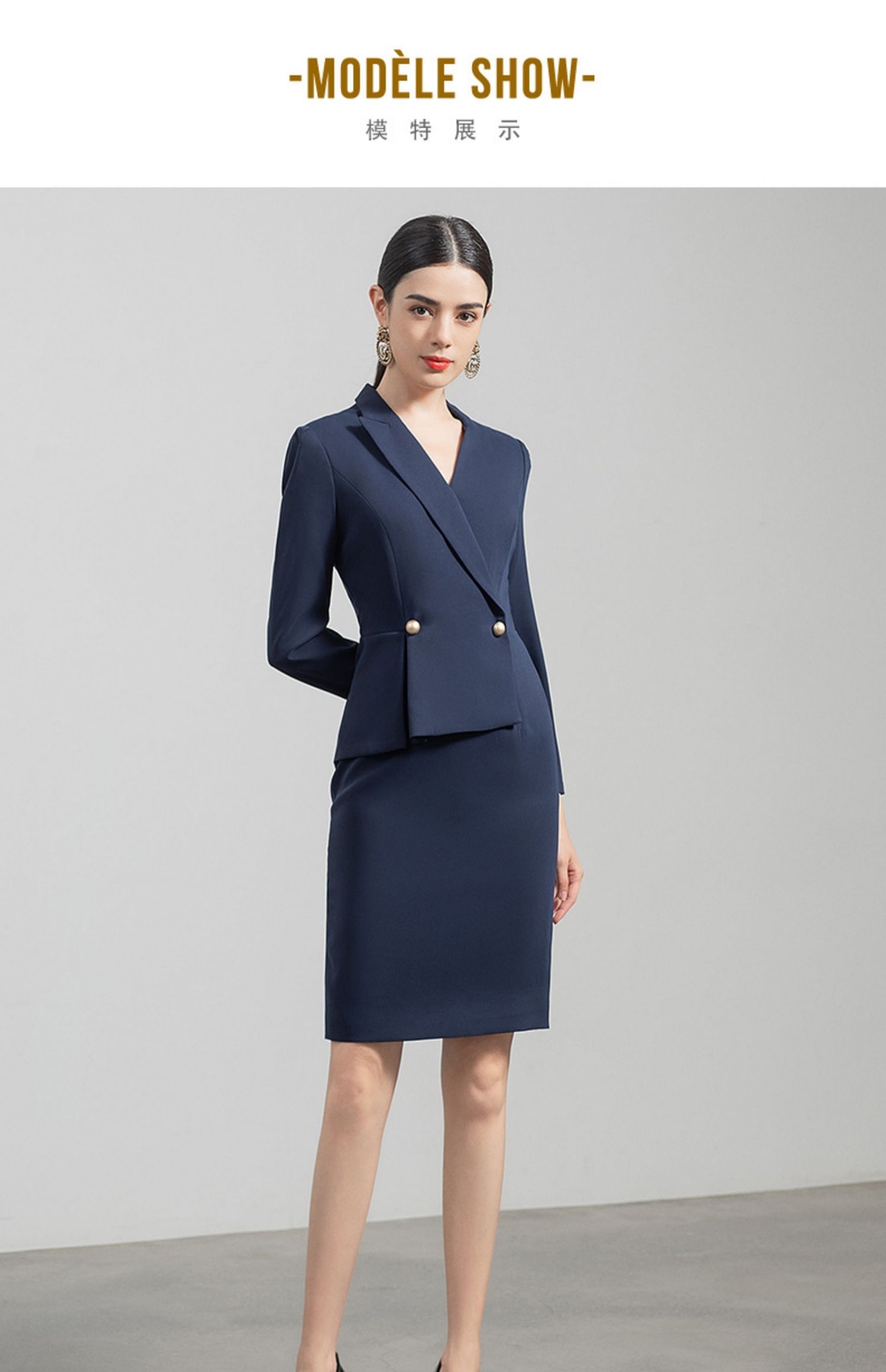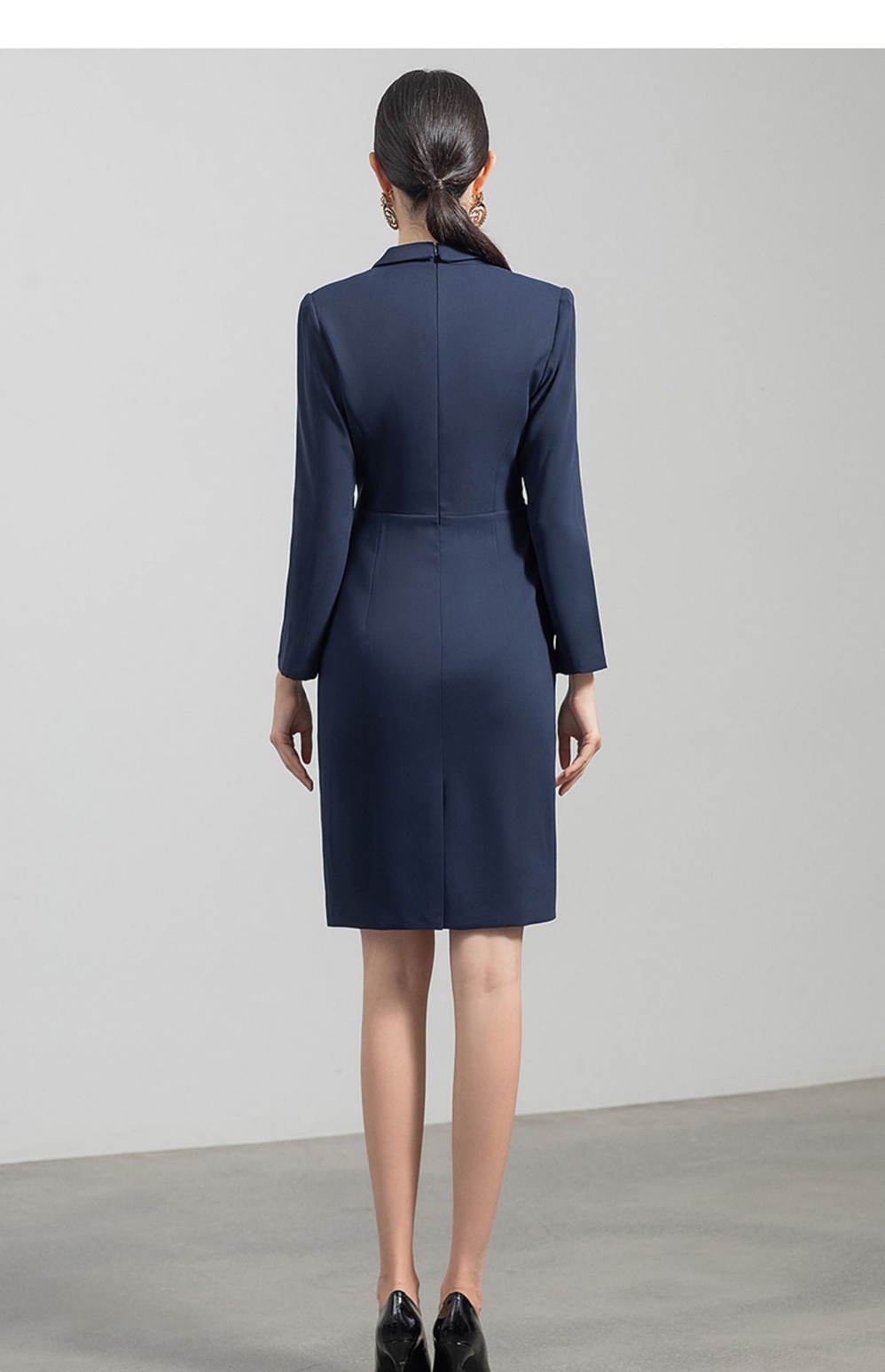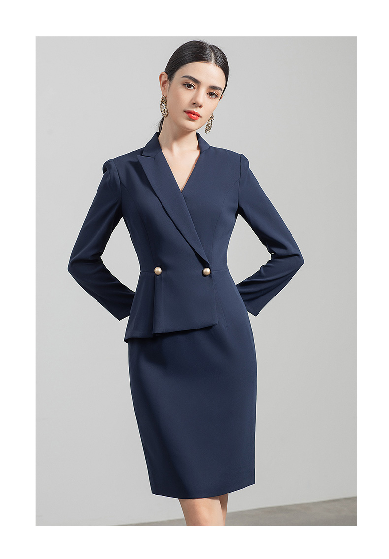 IWY/职业西装连衣裙女售楼部新款V领收腰藏青色法式显瘦裙子OL工装q520