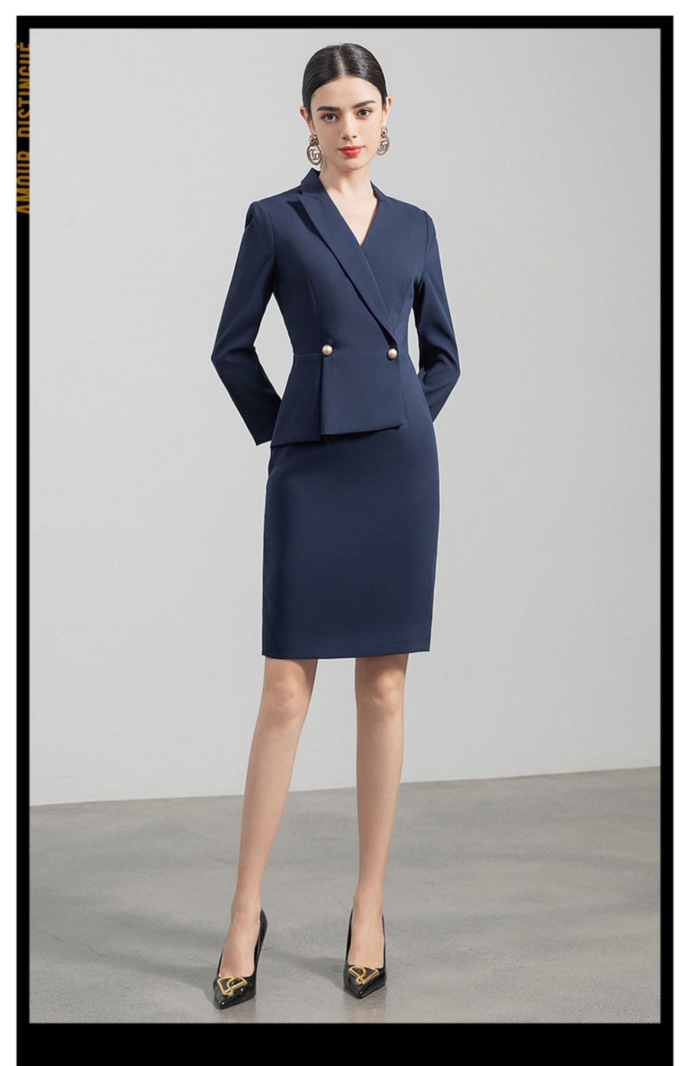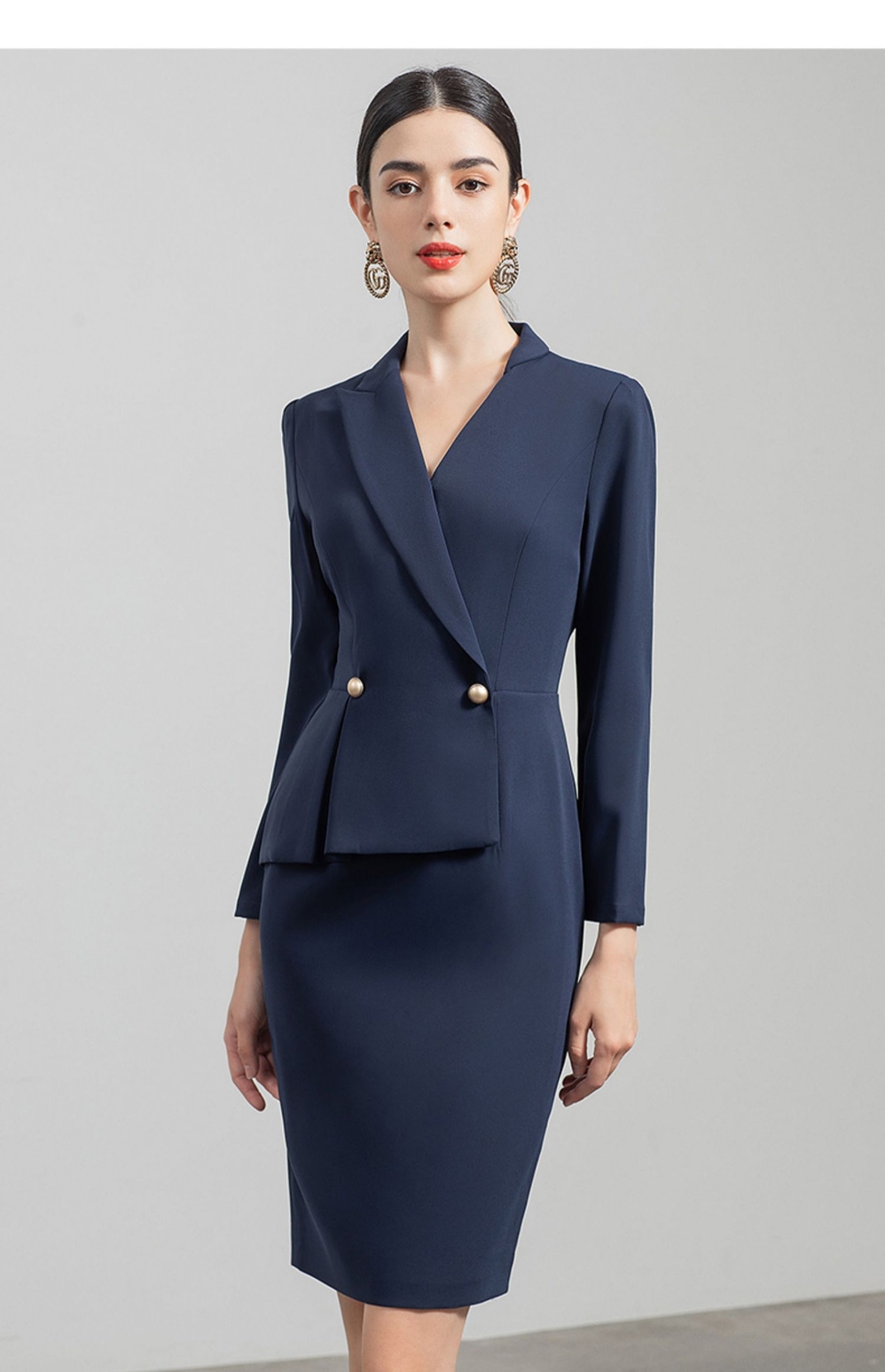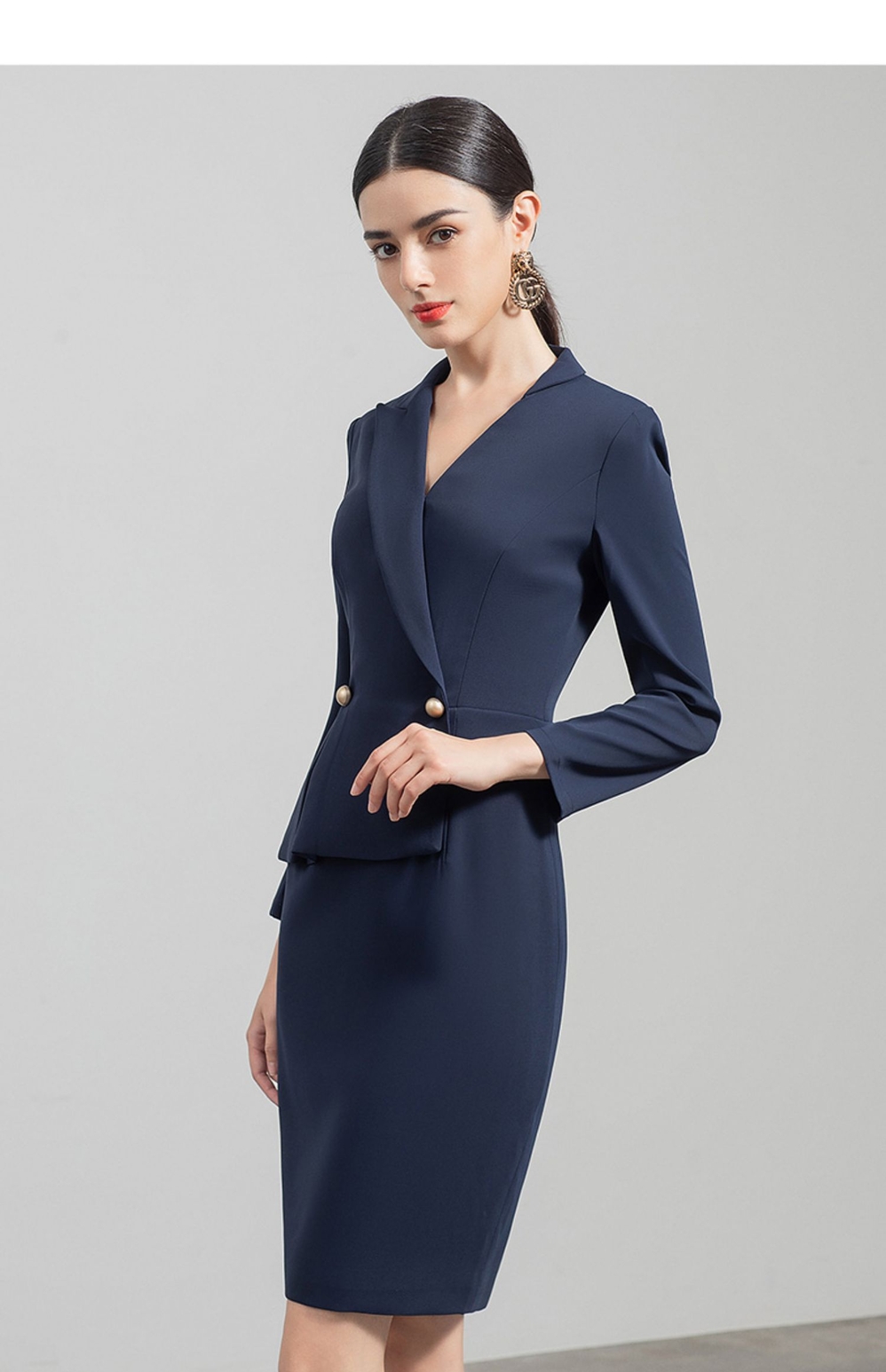 IWY/职业西装连衣裙女售楼部新款V领收腰藏青色法式显瘦裙子OL工装q520