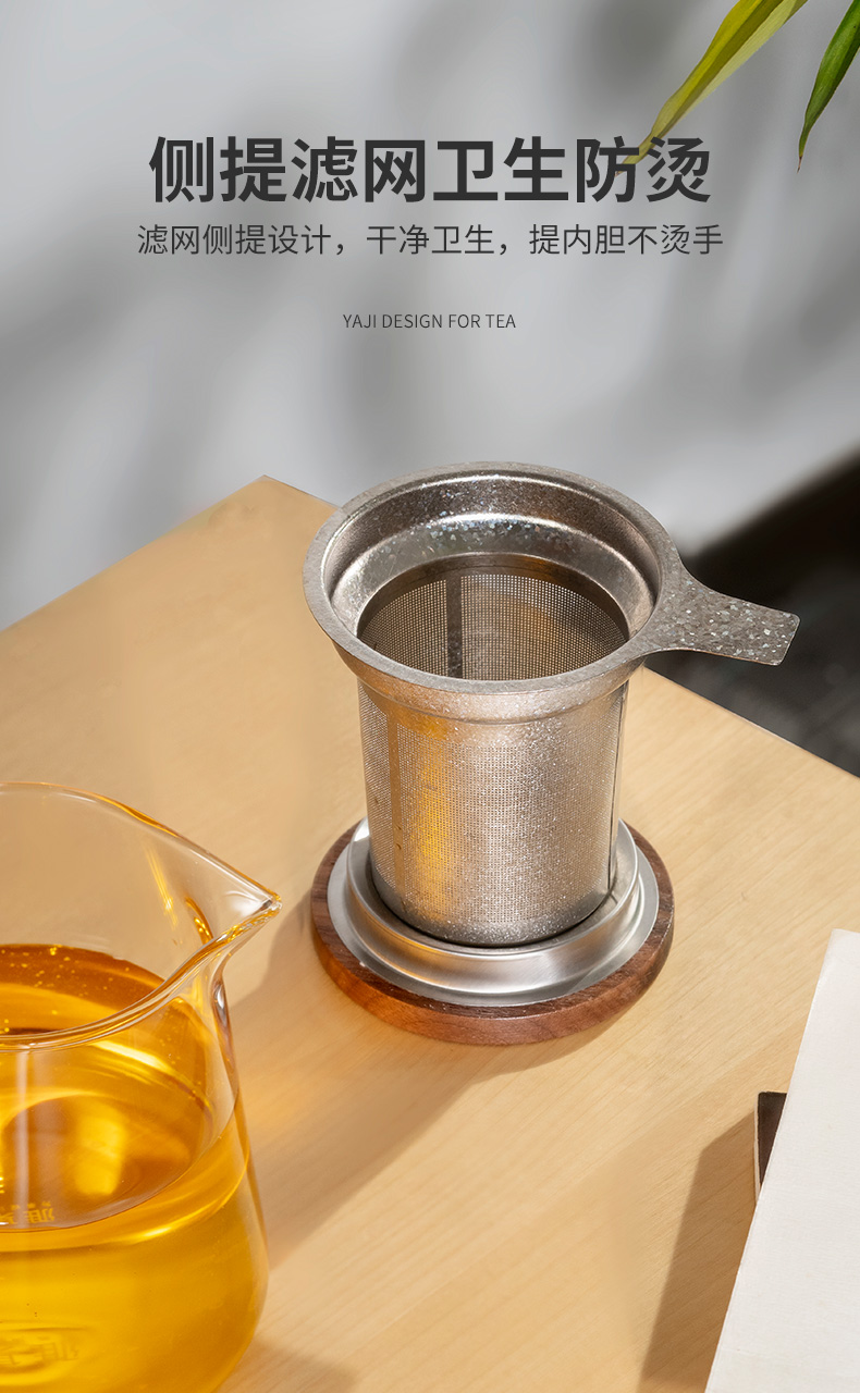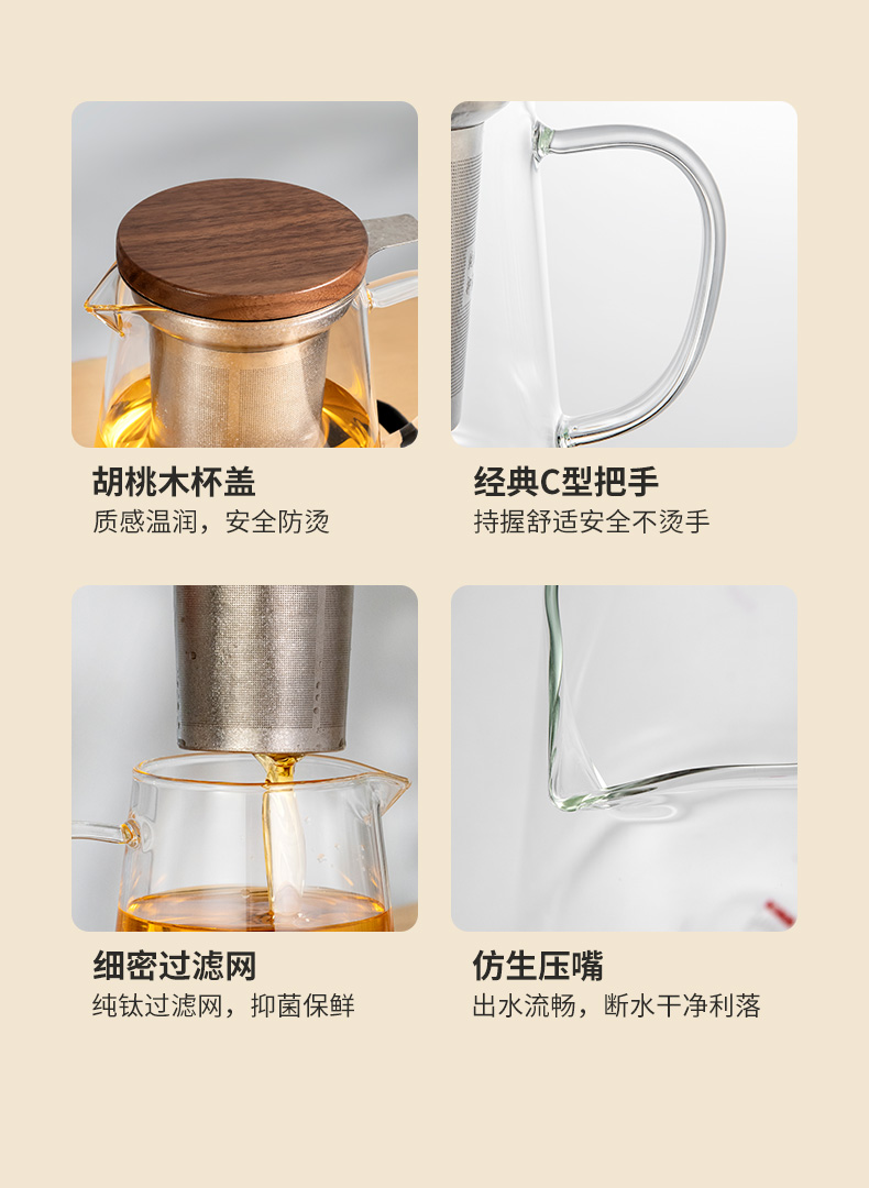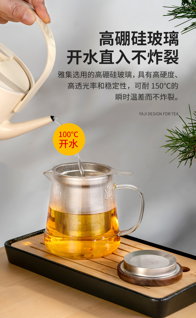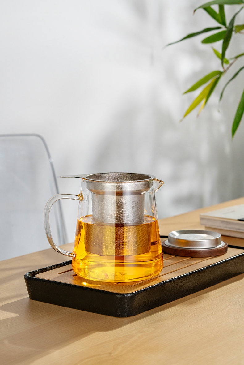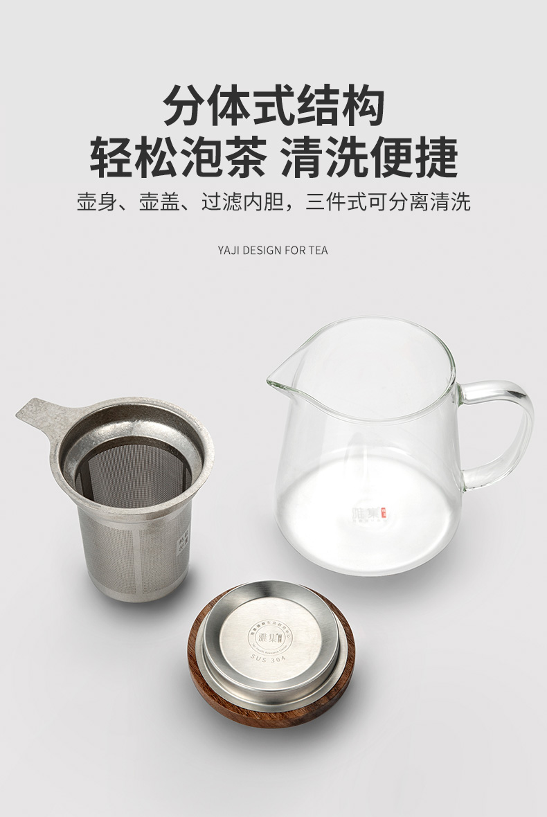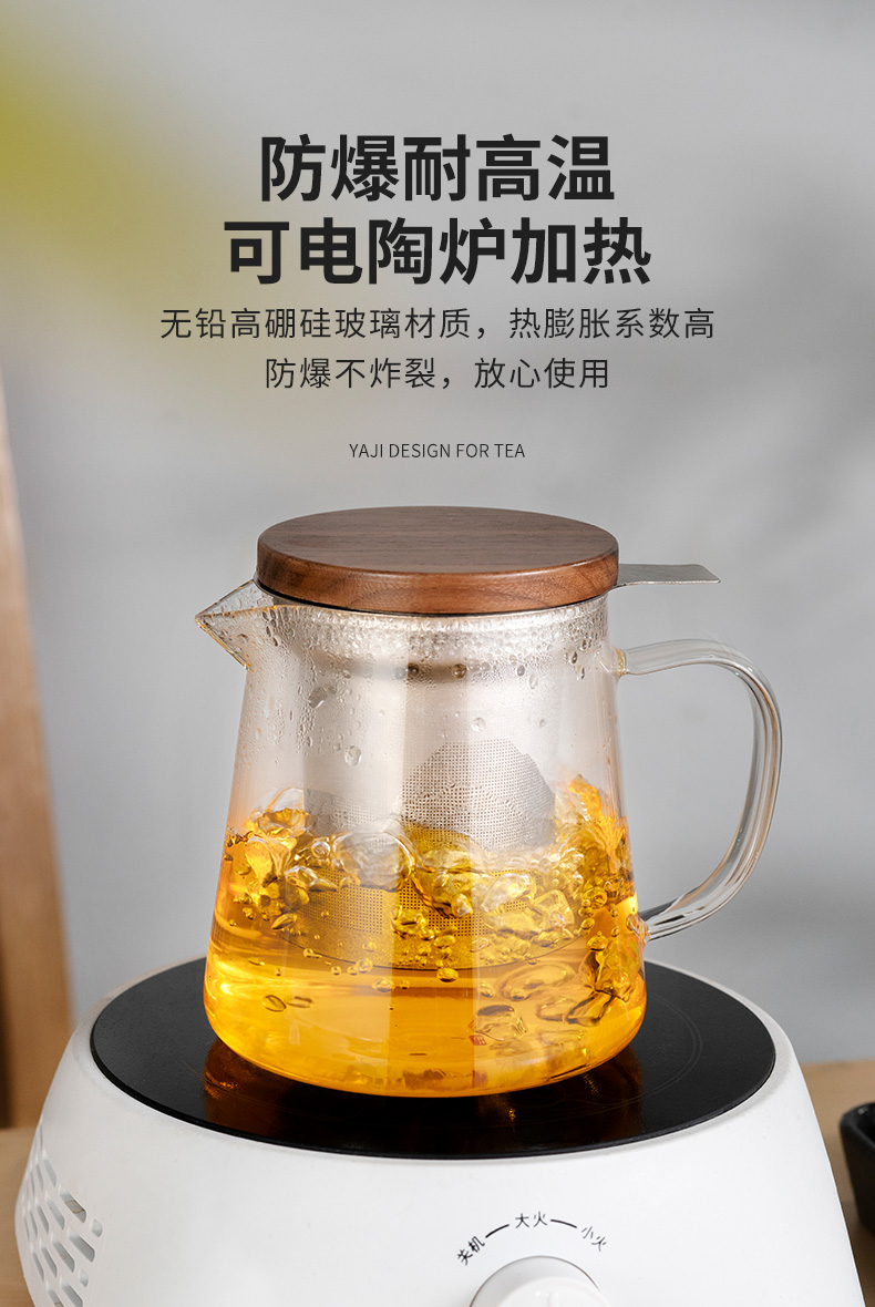 雅集玻璃壶璃山壶550ml(钛茶隔木盖款)
