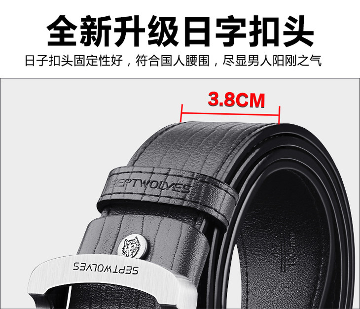 七匹狼男士皮带休闲针扣牛皮腰带韩版潮时尚百搭男裤带 黑色/咖色可选