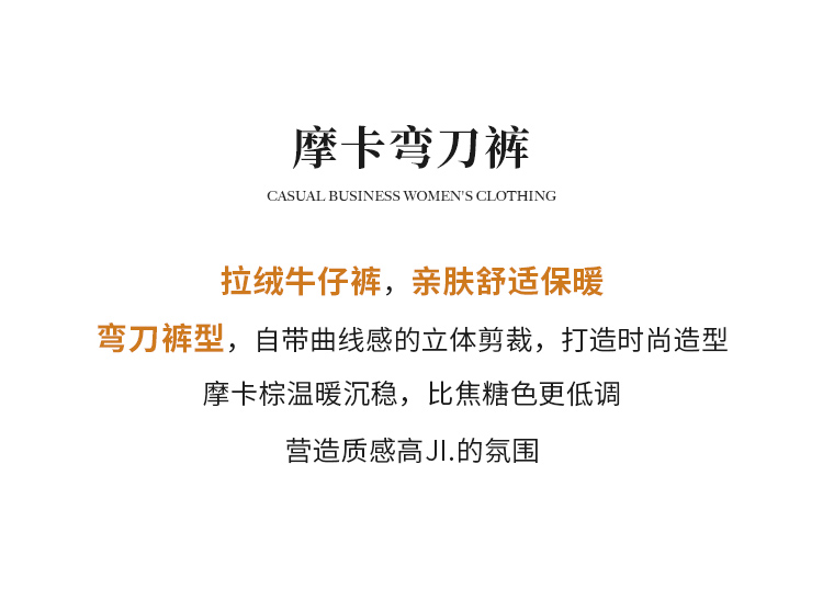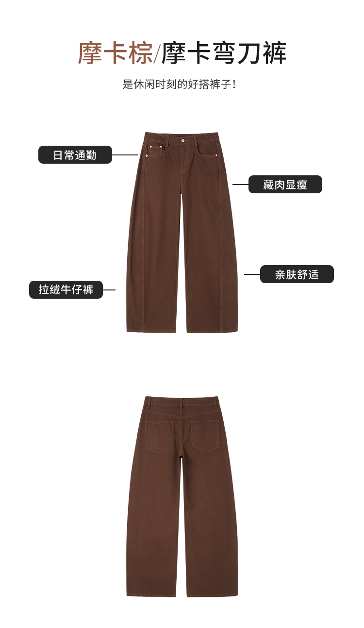 【商场同款】CNT5B74 “ 摩卡弯刀裤 ” 拉绒牛仔裤,亲肤舒适保暖 弯刀裤型酷感十足