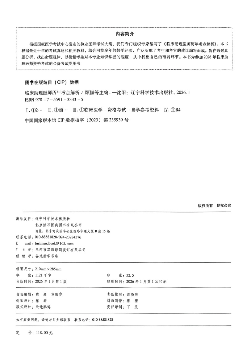 2026临床助理医师历年考点解析 执业医师资格考试 颐恒 林凯 武煜棋 王向荣 主编 难点试题 配同步视频 辽宁科学技术出版社