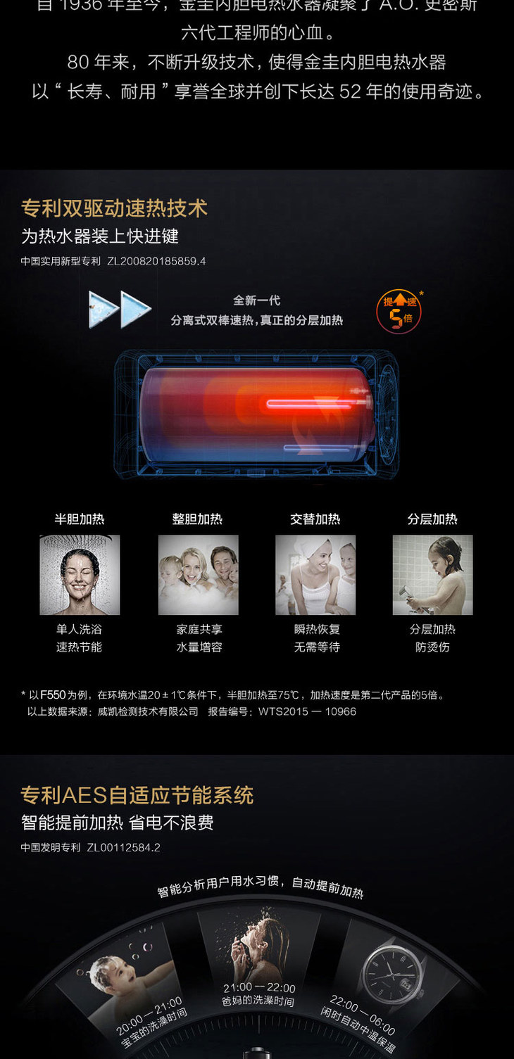 A.O.Smith/史密斯 F580 升L电热水器家用速热储水式AO保养提示