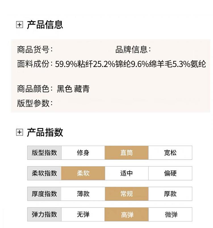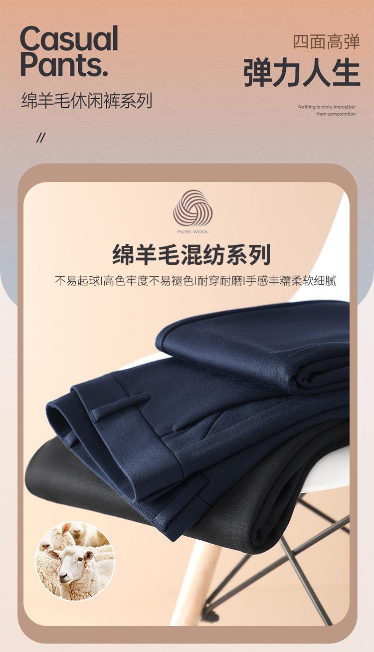 羊毛混纺休闲长裤男士秋冬季新款商务休闲百搭轻奢职业直筒西裤男