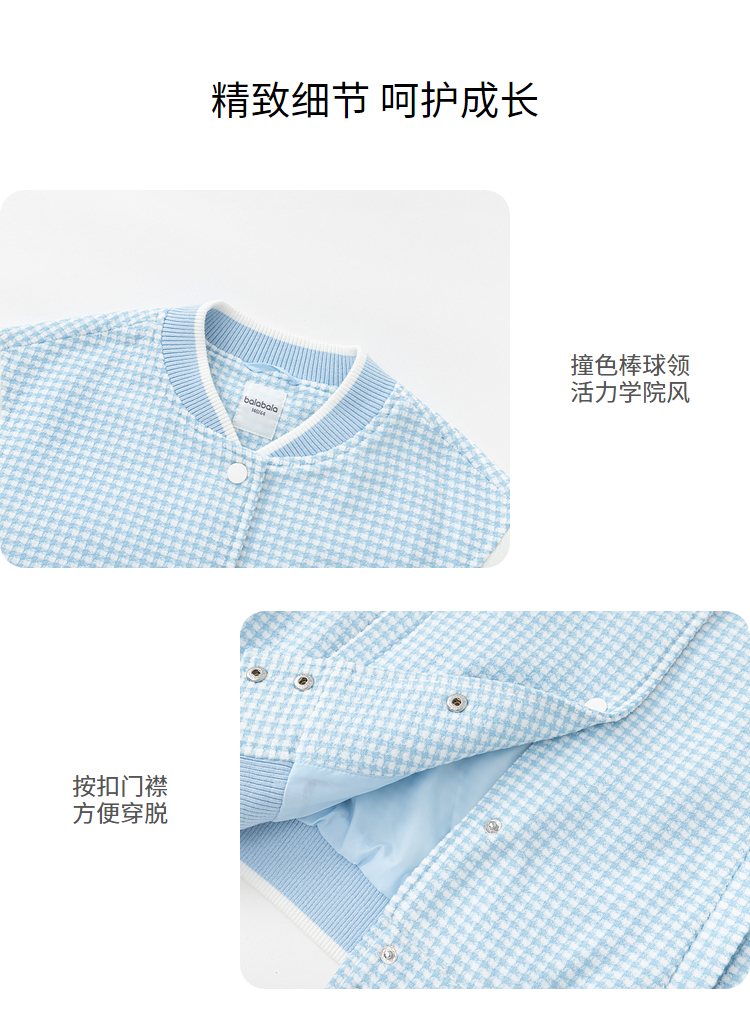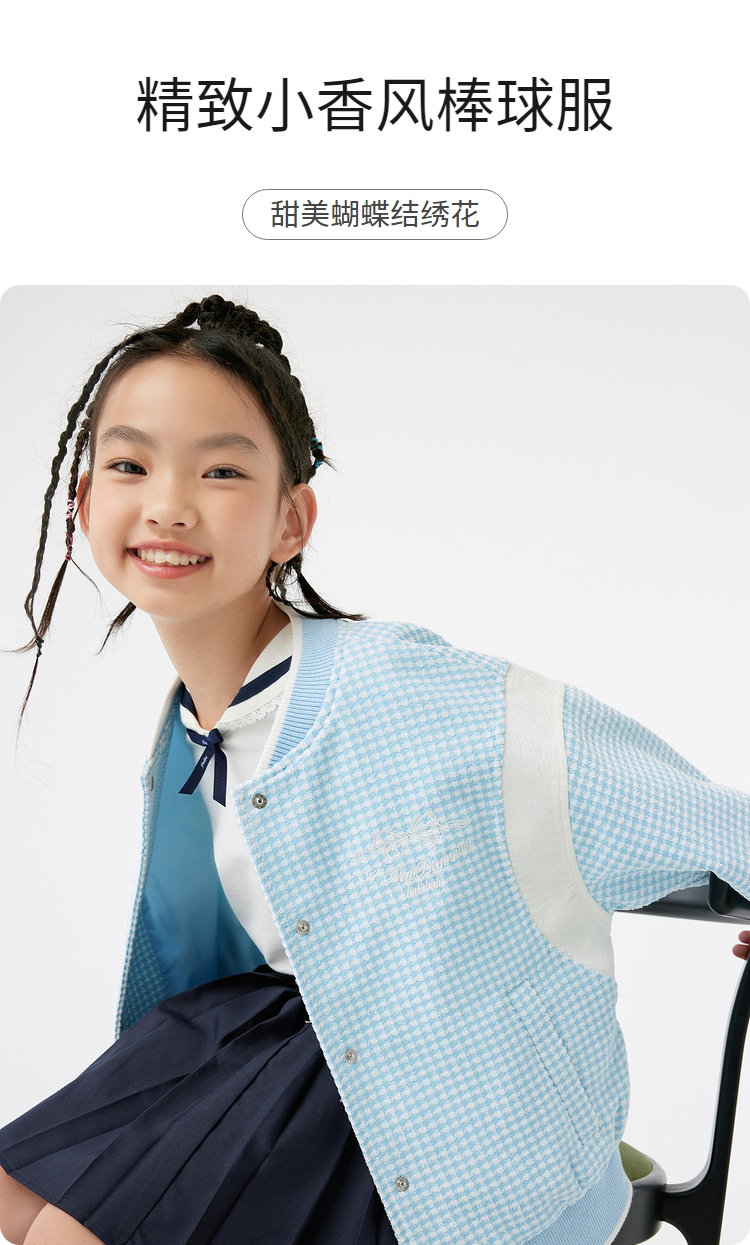 巴拉巴拉女童棒球服小香风外套秋季款宽松上衣时尚洋气蝴蝶结绣花