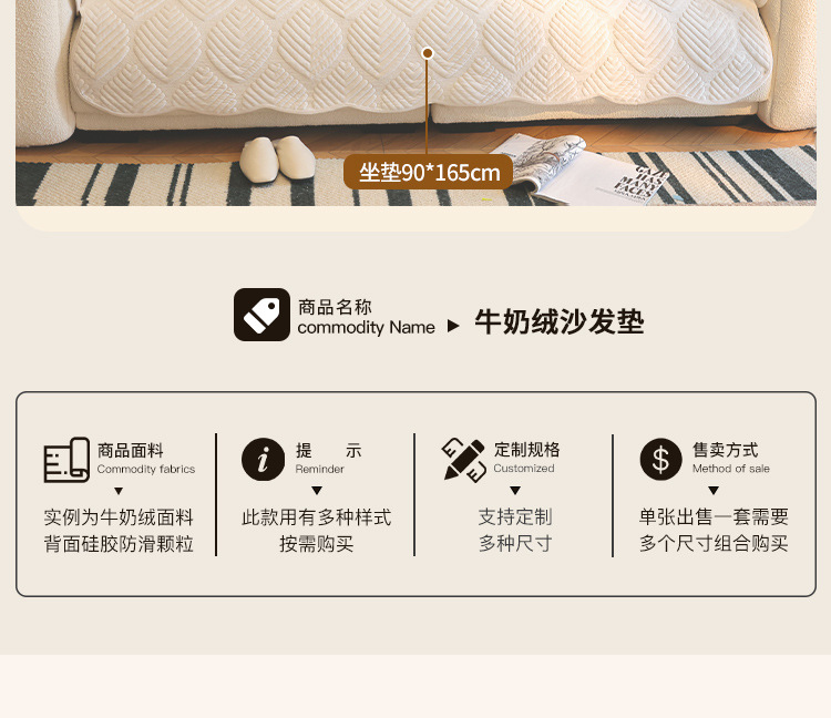 【加厚夹棉真材实料】秋冬奶油风牛奶绒沙发垫 2024新款冬季毛绒软糯厚实防滑坐垫