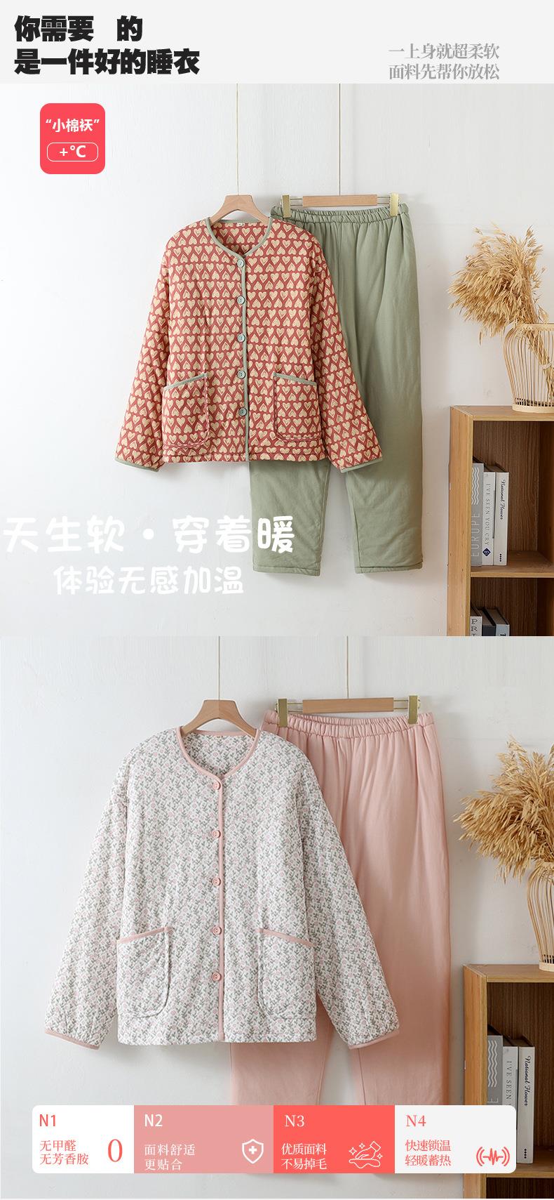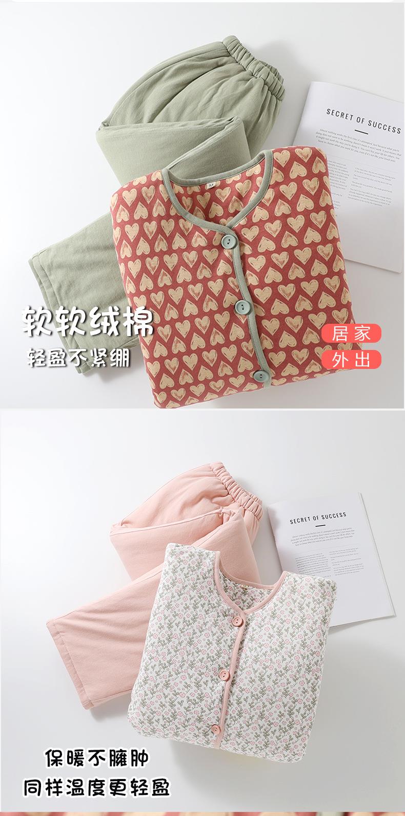 新款秋冬季棉毛加厚小棉袄睡衣女士长袖夹层保暖可外穿家居服套装