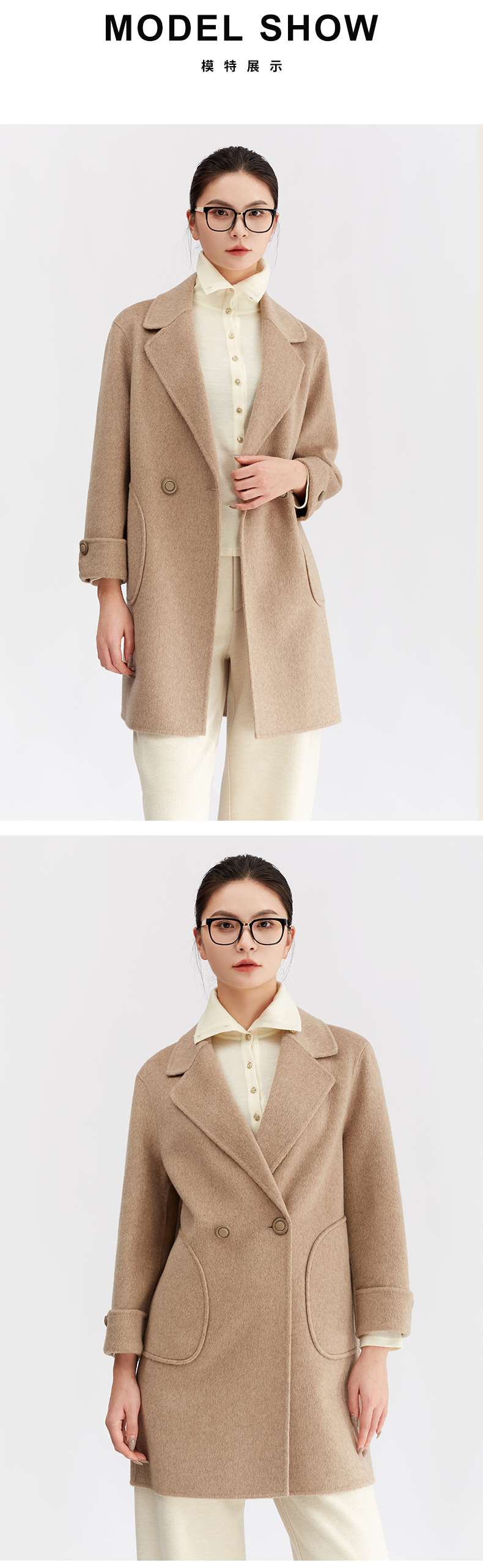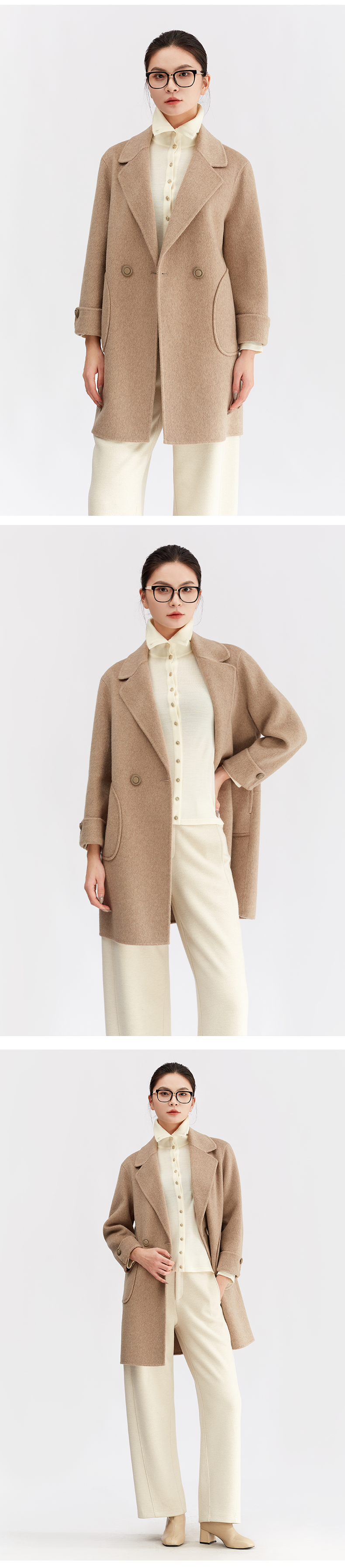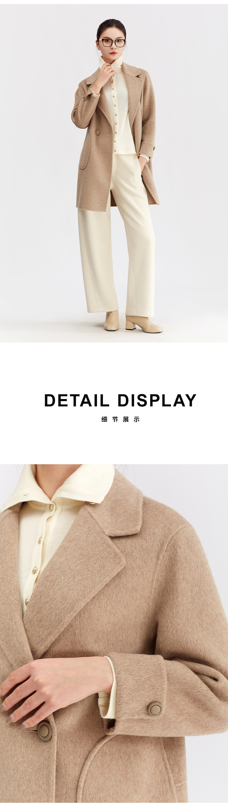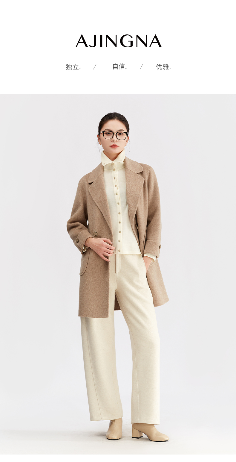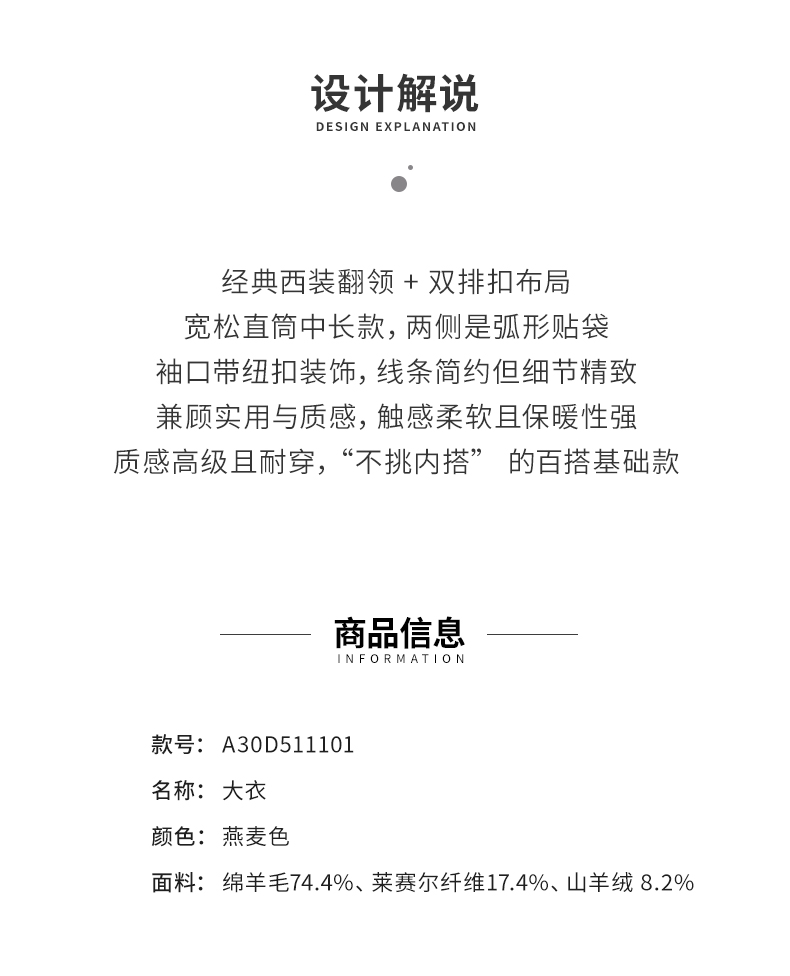 【商场同款】阿菁娜冬季新款经典双排扣大衣宽松中长款弧形贴袋设计A30D511101