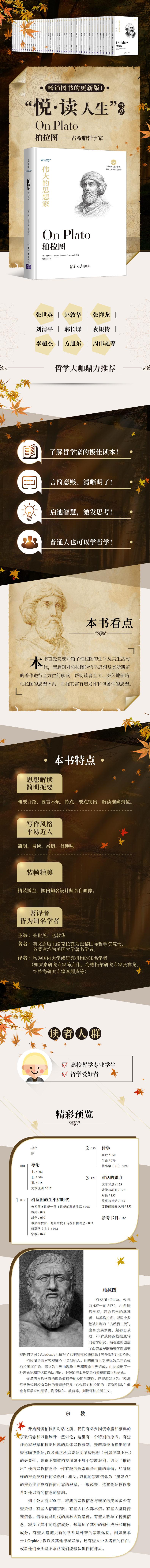 《柏拉图》首先简要介绍了柏拉图的生平及其生活时代,而后则对柏拉图的哲学思想及其所遗留的著作进行多方面的解读,帮助读者全面、深入地领略柏拉图的思想体系,把握其富有启发性和包蕴性的思想。
