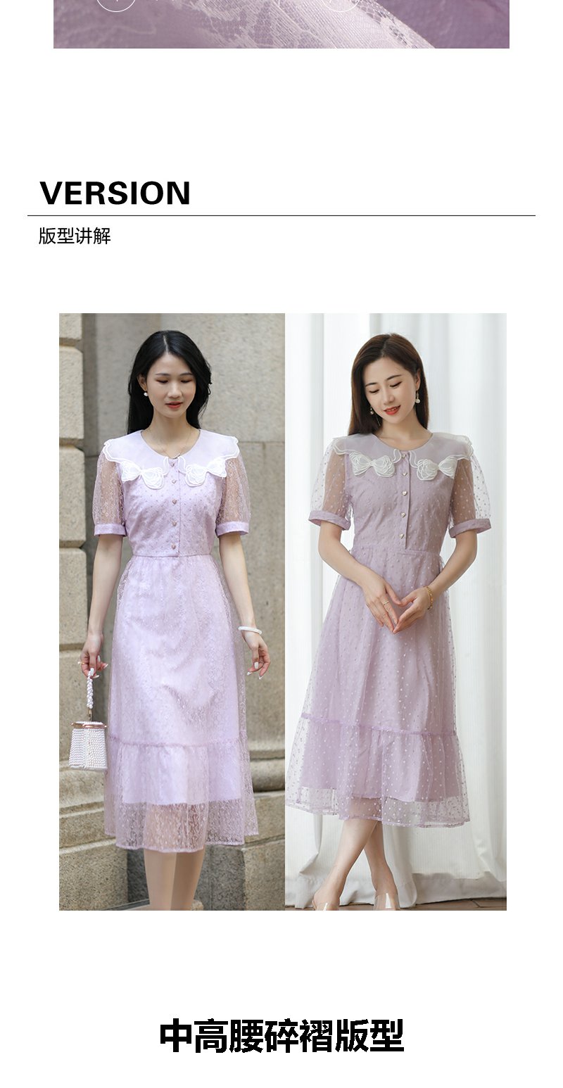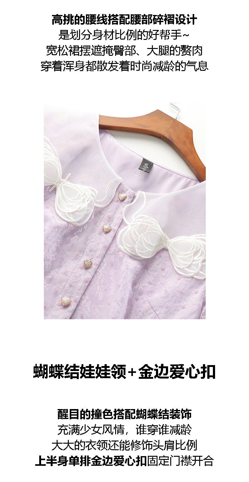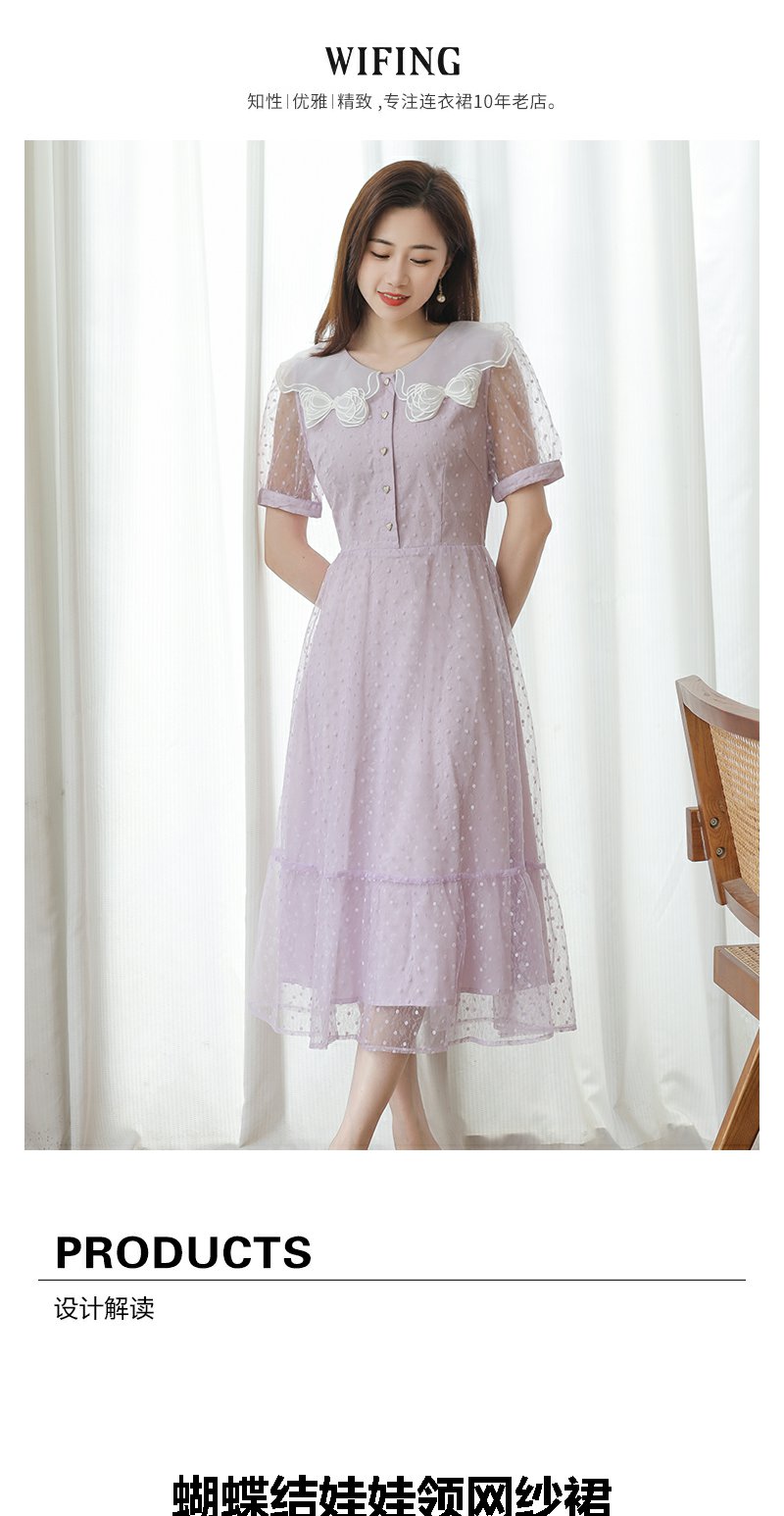未风紫色网纱娃娃领连衣裙女夏2025夏季新款女装气质高腰减龄裙子