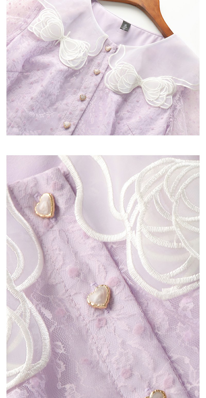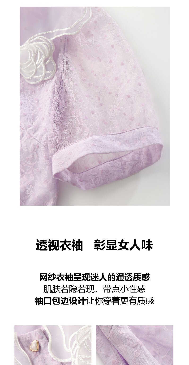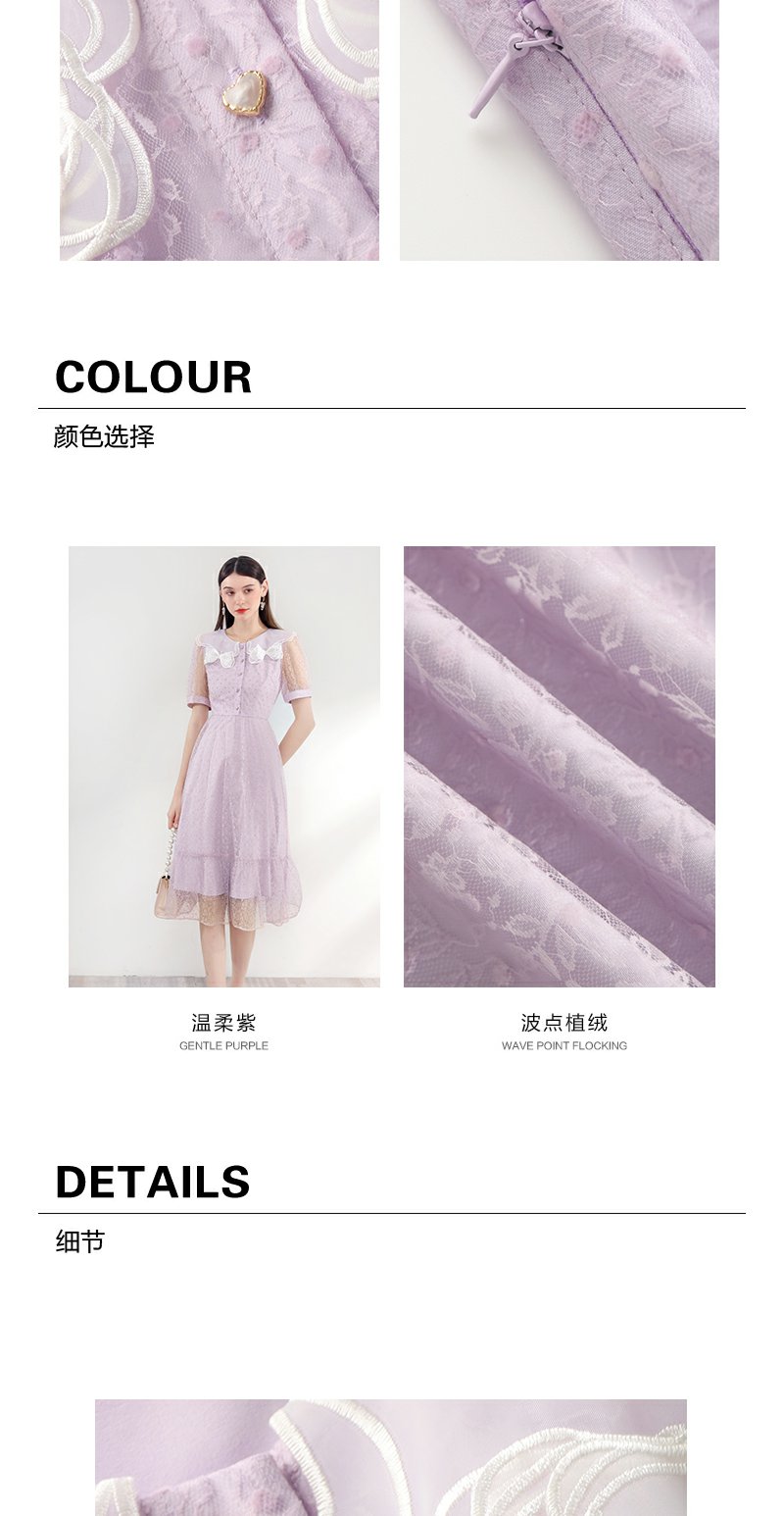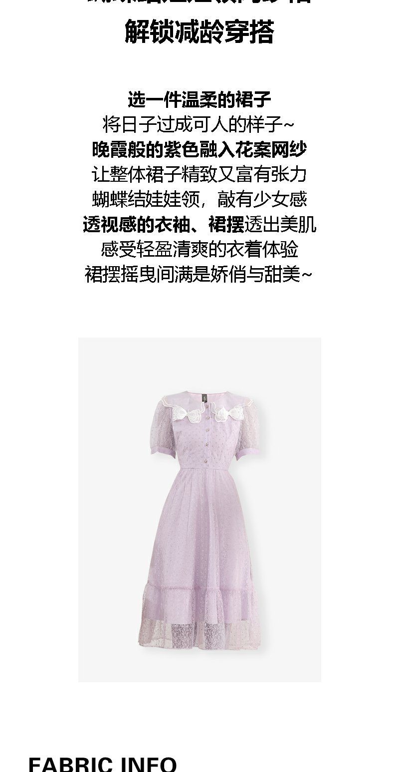 未风紫色网纱娃娃领连衣裙女夏2025夏季新款女装气质高腰减龄裙子