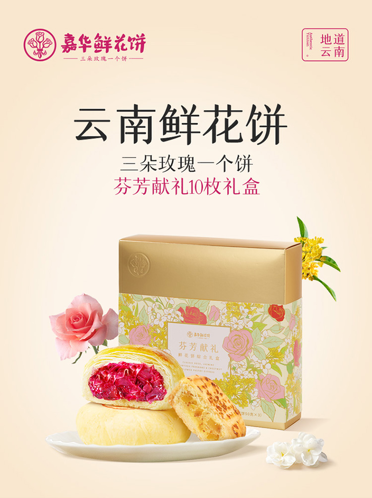 嘉华鲜花饼 经典玫瑰饼礼盒5枚装250g