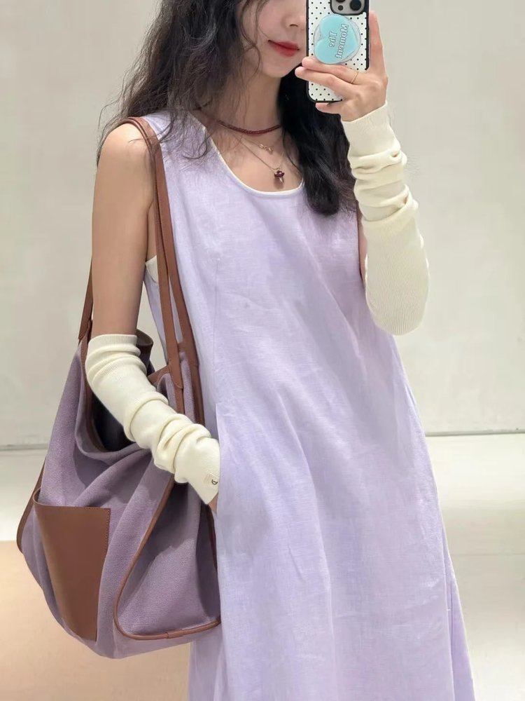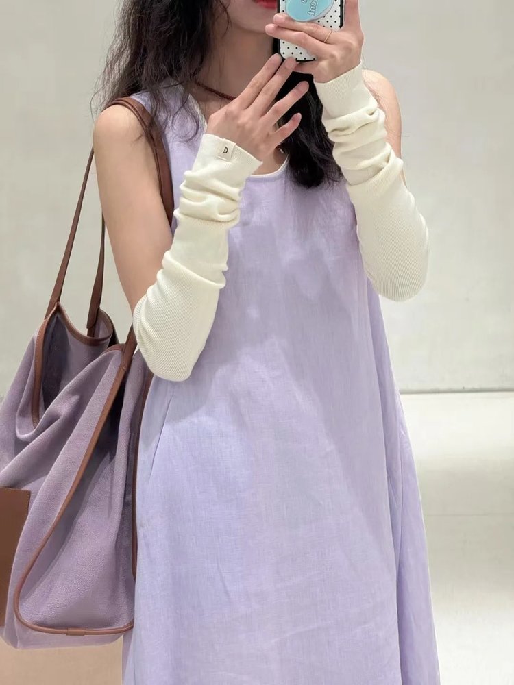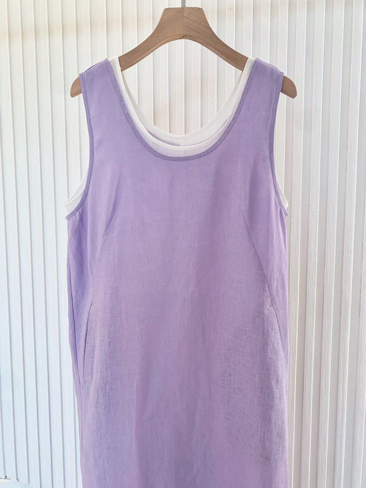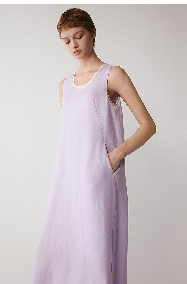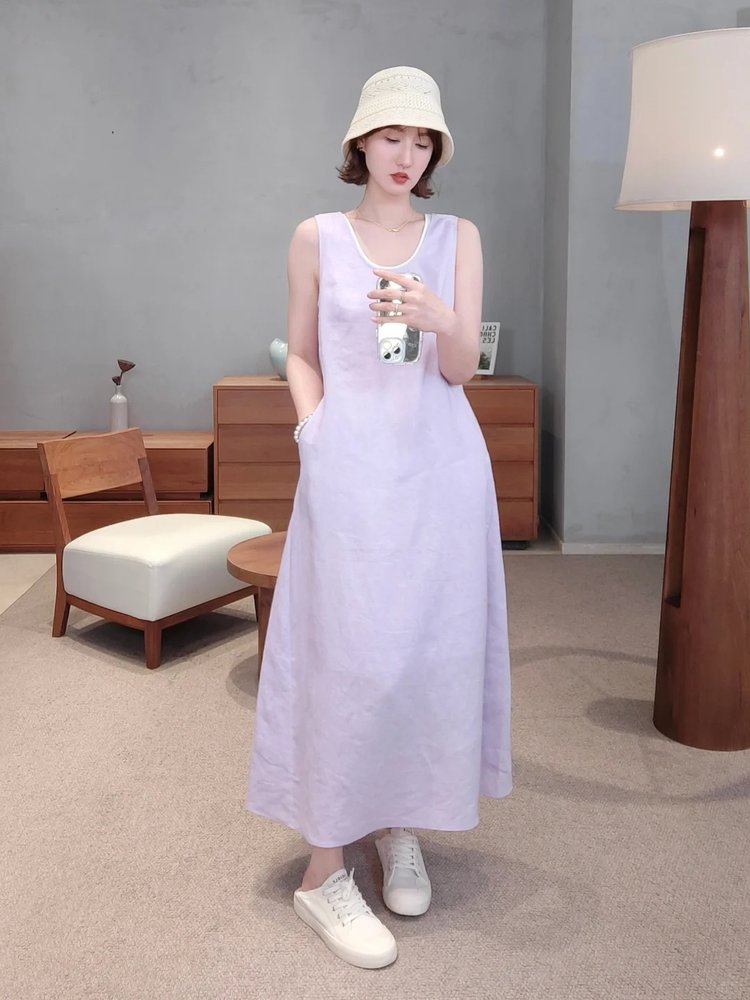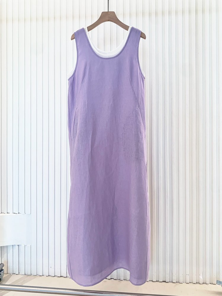【高品质私服】【IC粉紫亚麻平纹两件套连衣裙】如蝉翼般轻透贴肤,尽显独特东方美感,营造出利落又适宜的春夏氛围G1474-CC【无标出货 介意慎拍】
