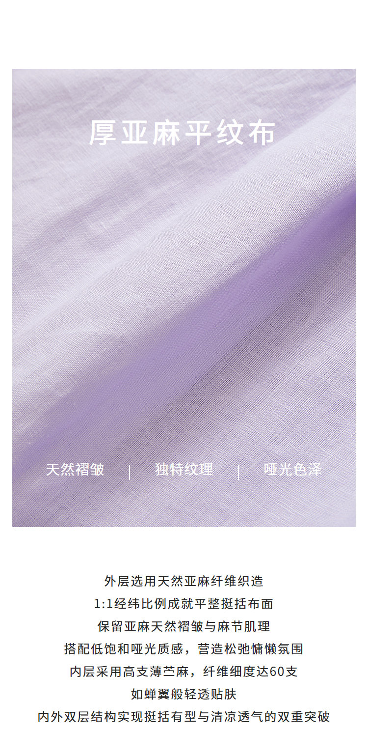 外层:香芋紫亚麻——自带天然「褶皱滤镜」,