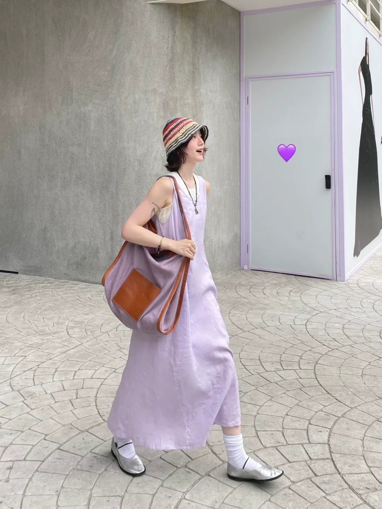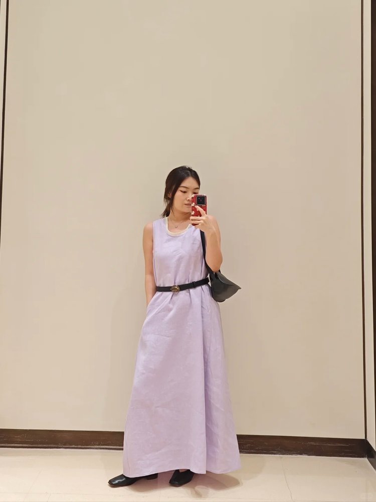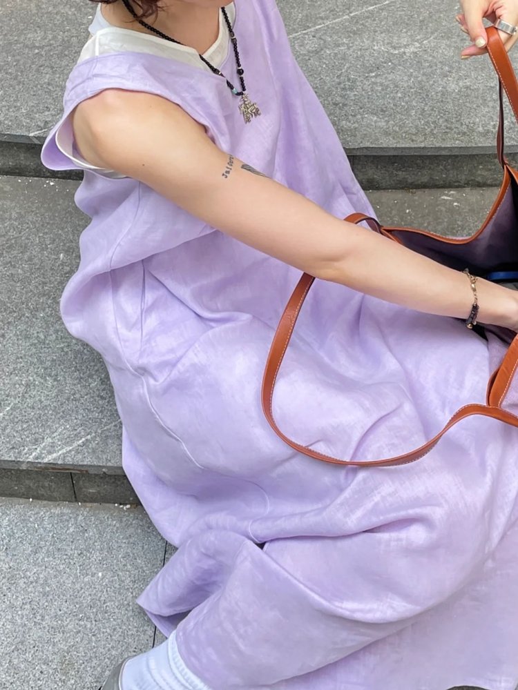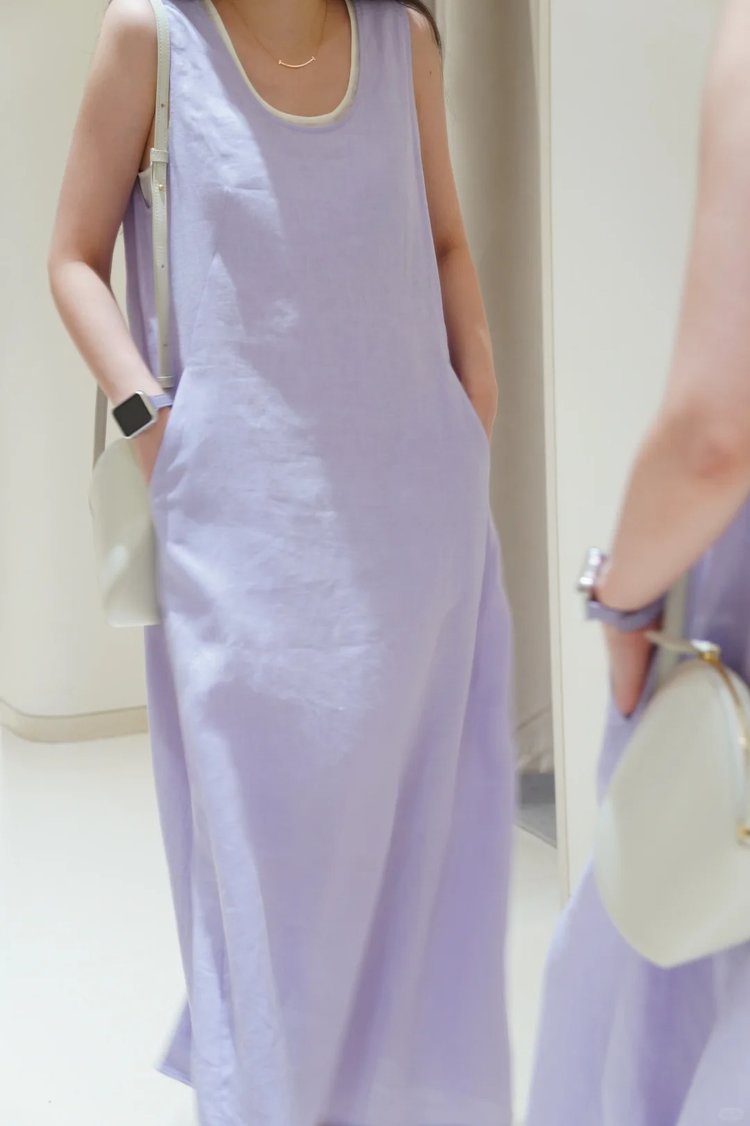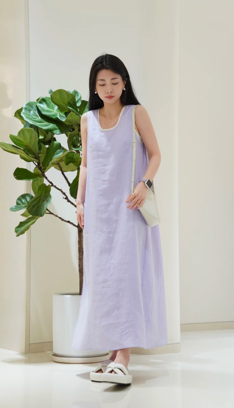 小禾同款双层麻料茧型裙|香芋紫的东方美学