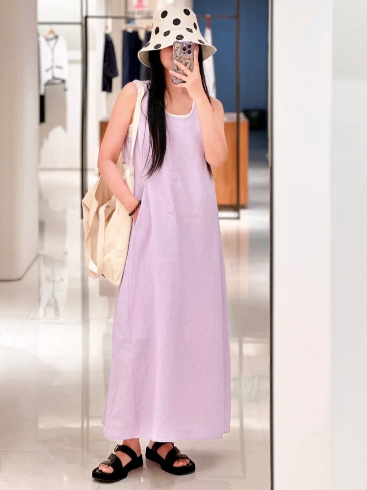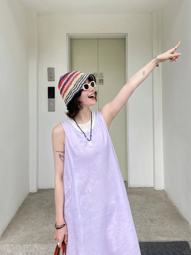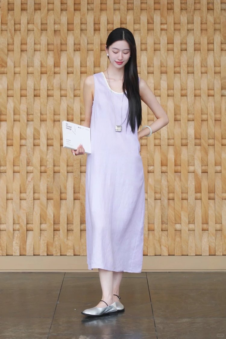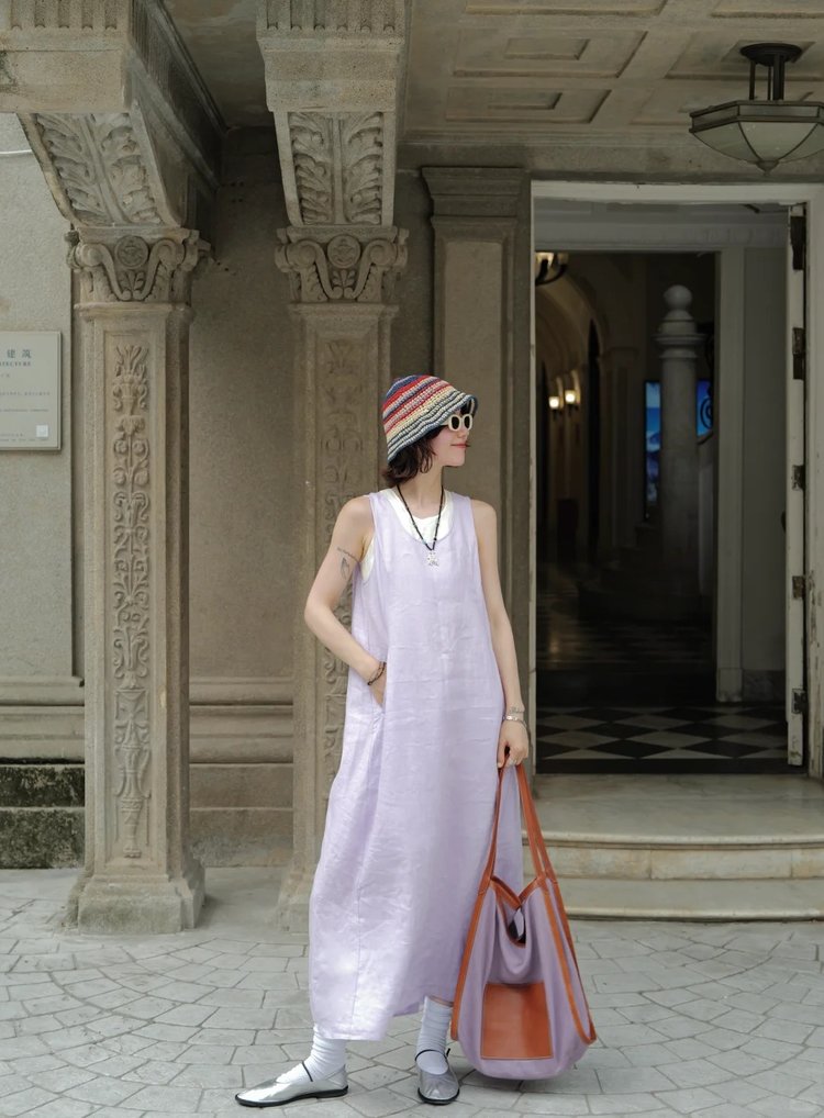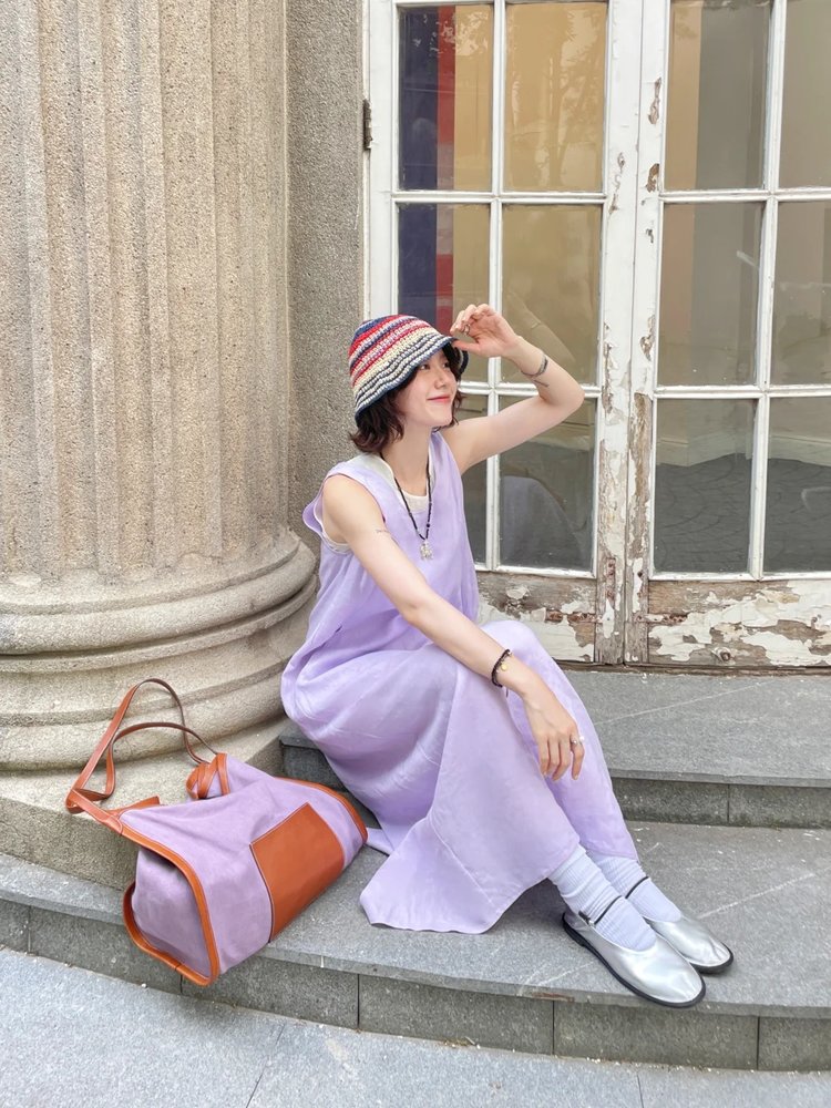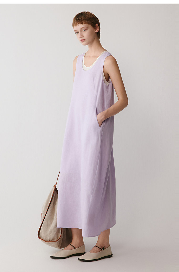 小禾同款双层麻料茧型裙|香芋紫的东方美学
