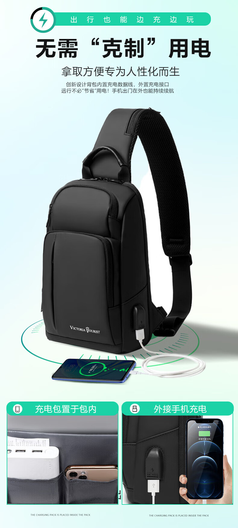 维多利亚旅行者多功能商务斜挎包单肩包胸包5089