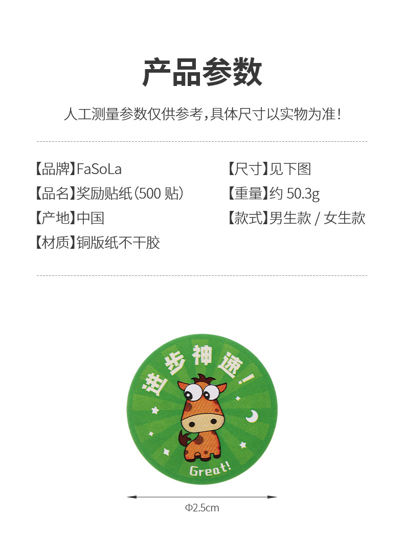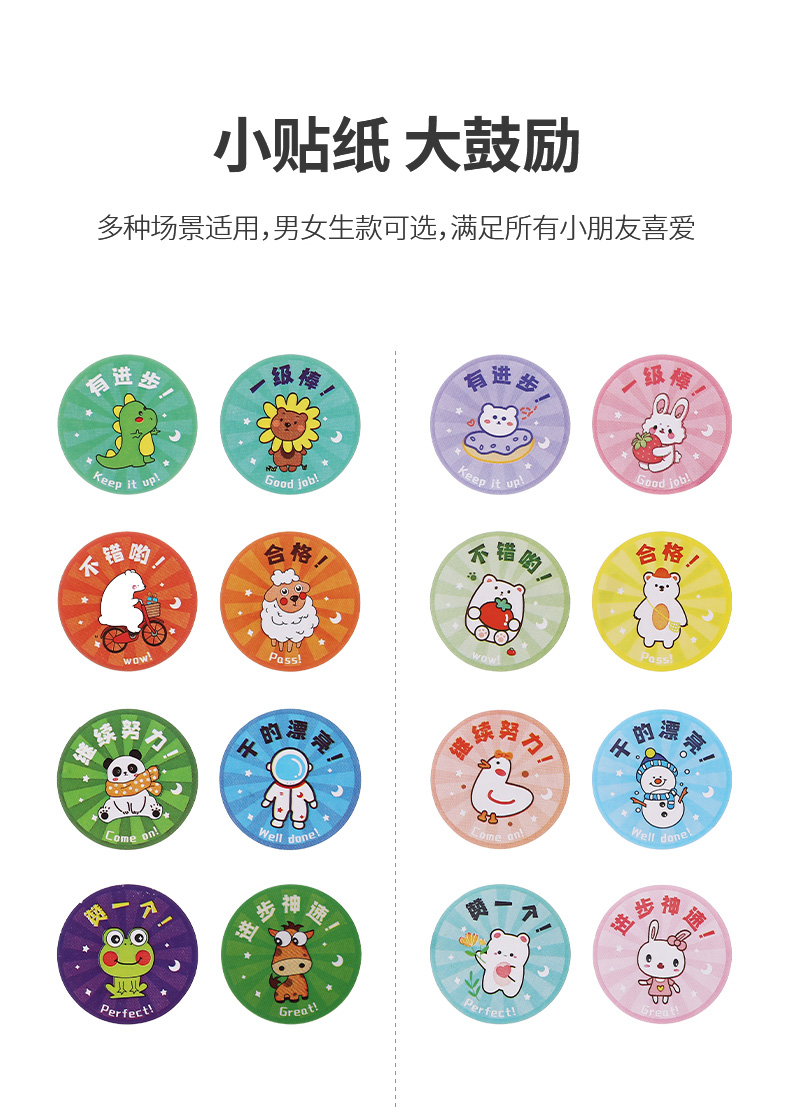 FaSoLa儿童奖励贴纸幼儿园学生自律表扬小红花贴画圆形卡通不干胶
