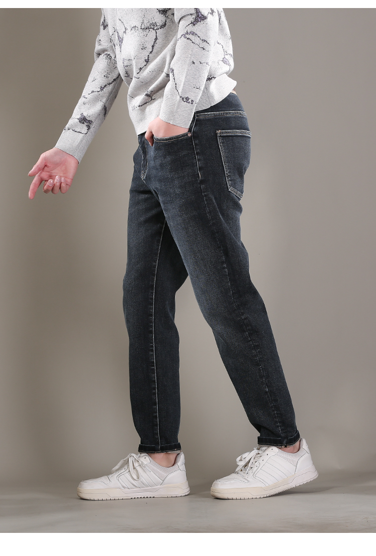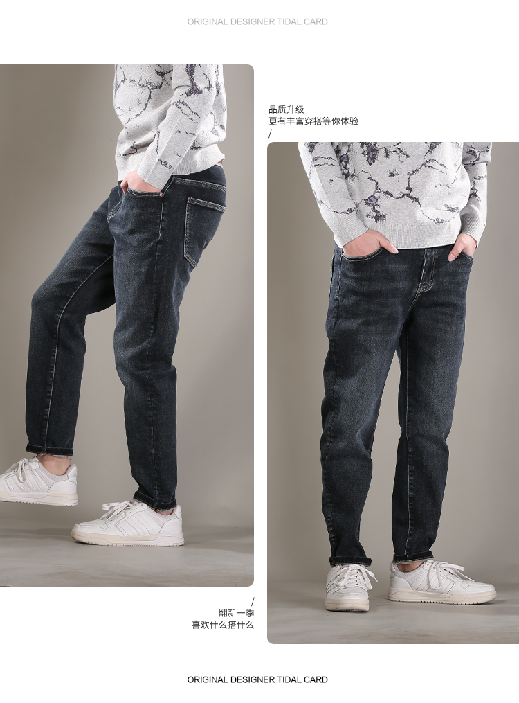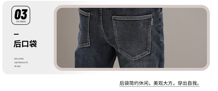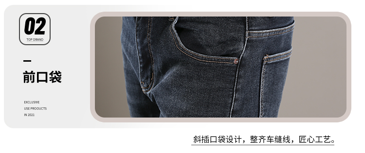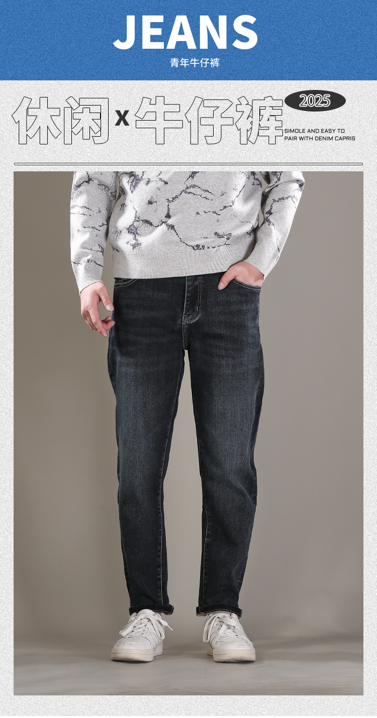 DRONKOO 2025 织带腰带表袋右后袋蓝底绣线一体薄绒厚牛仔长裤