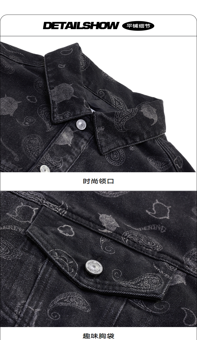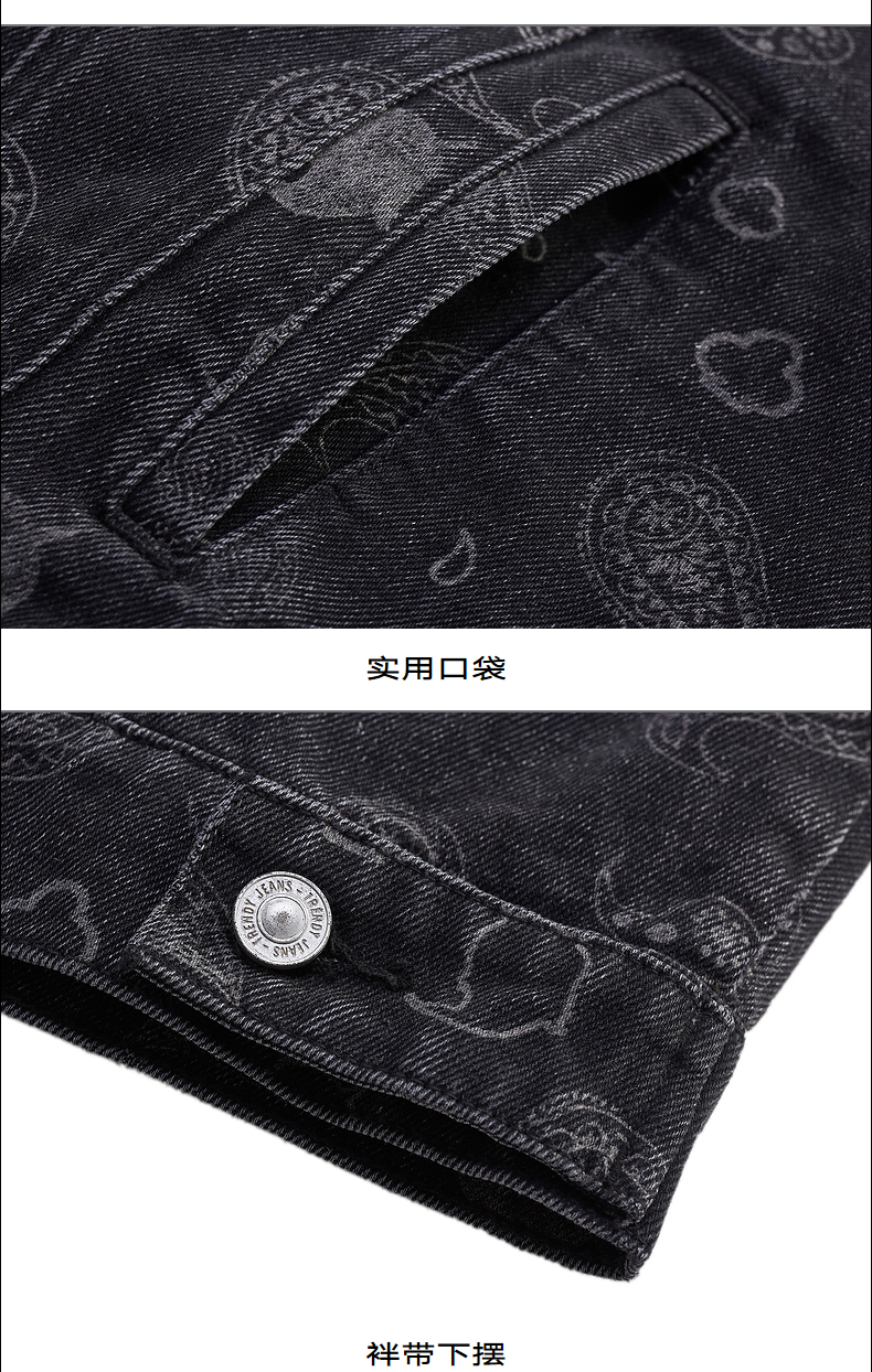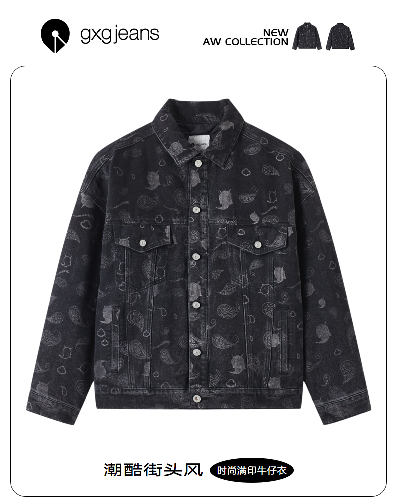 gxgjeans男装秋冬牛仔夹克男满印翻领加厚夹克外套