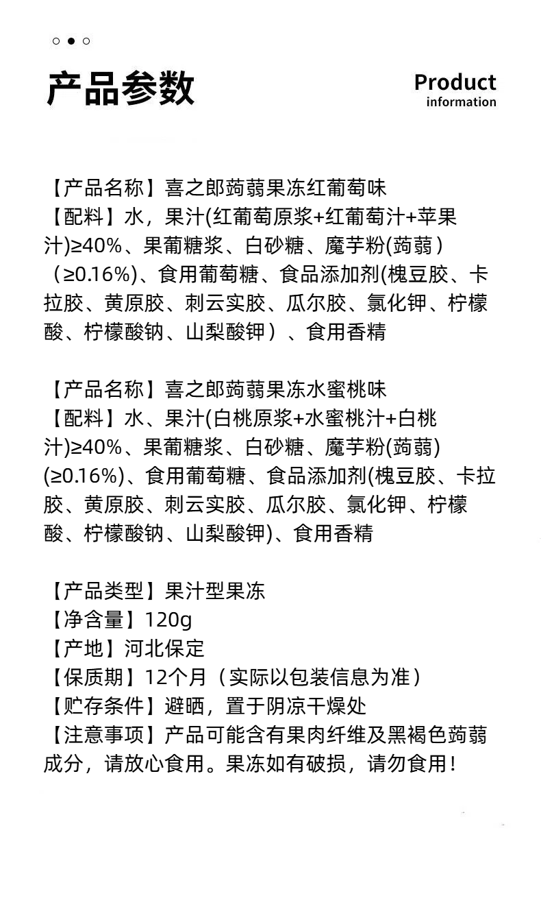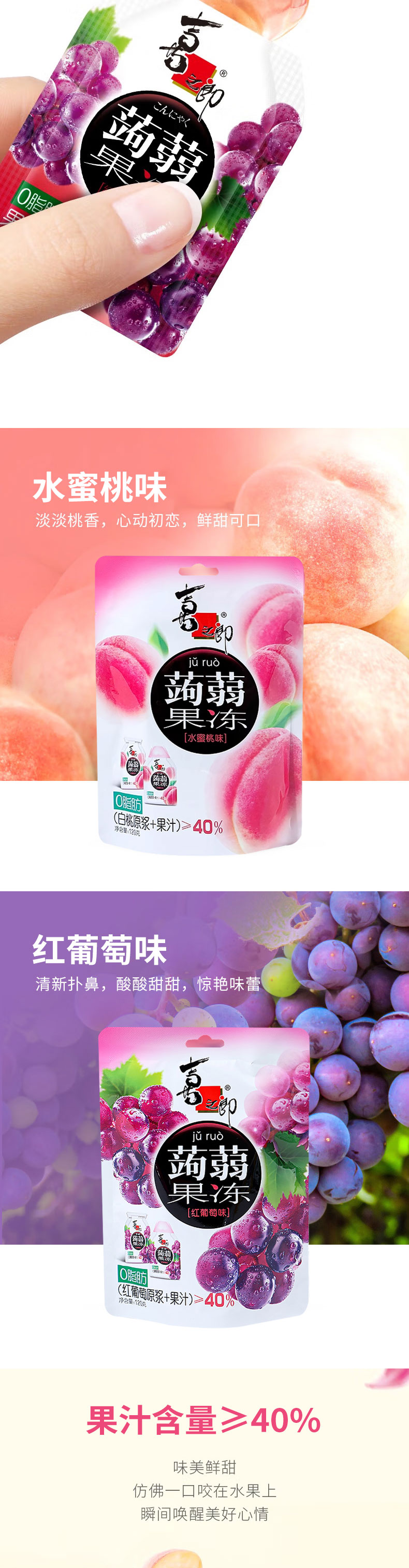 喜之郎蒟蒻果冻红葡萄味|水蜜桃味120g