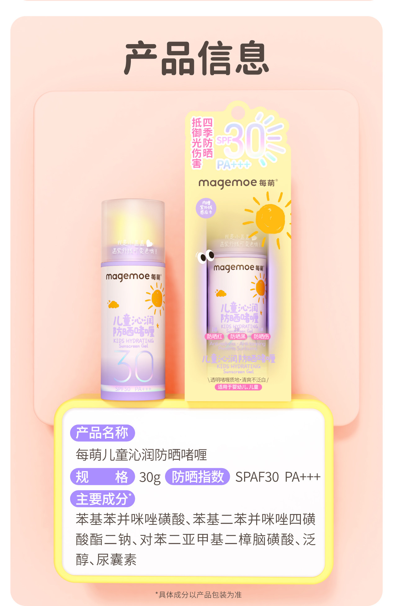 29年1月 每萌 儿童沁润防晒啫喱 30g